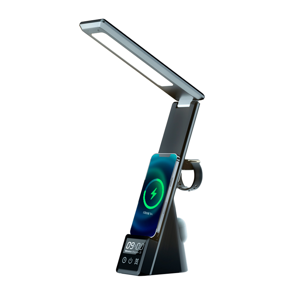 Настольная лампа с беспроводными зарядками, часами и будильником Zeus