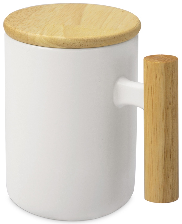 Кружка с ручкой и крышкой из каучукового дерева Jeny