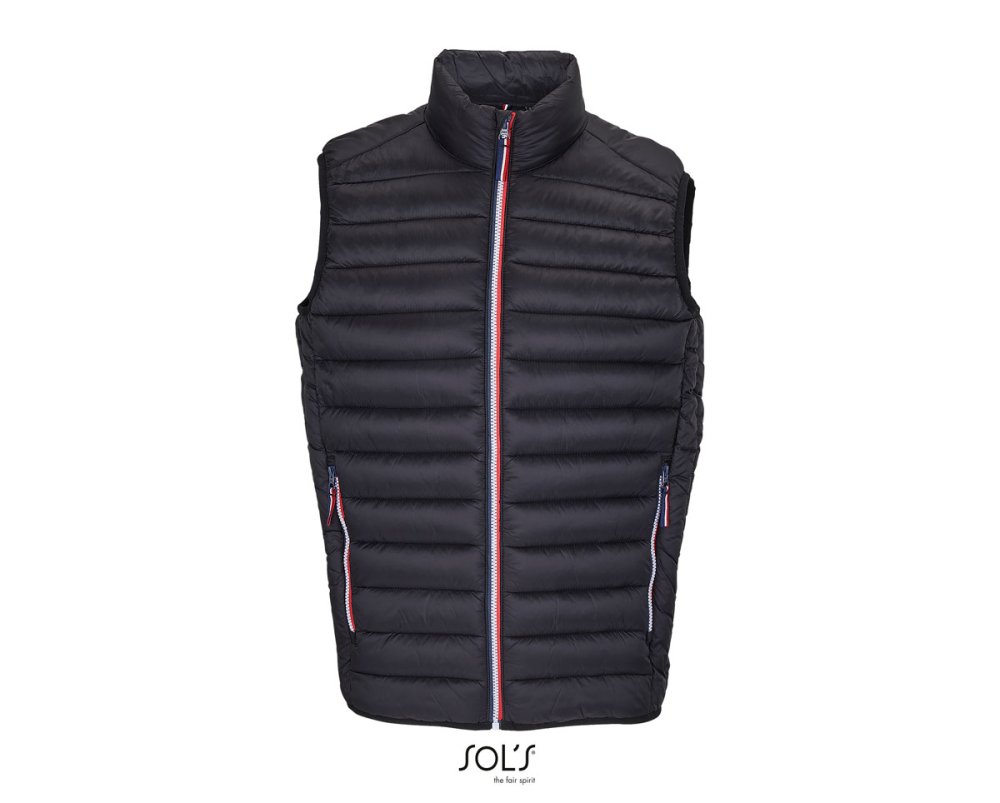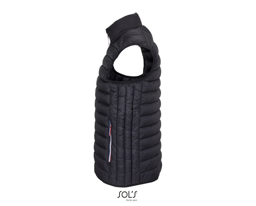Мужской легкий жилет. Внешняя ткань и подкладка: 100% полиамид (НЕЙЛОН 380Т).Квилтинг 90% пуха и 10% пера.Застежка-молния.2 передних кармана на молнии.2 внутренних кармана.Трехцветные детали.Система "in bag": складывается в мешочек на шнурке со стопорами.
