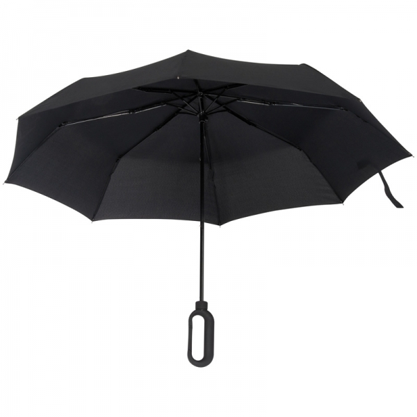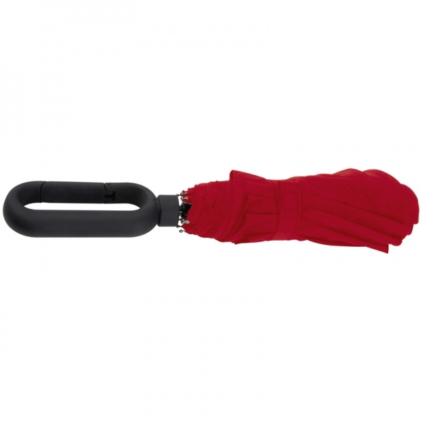 Зонтик с прорезиненной ручкой-карабином. Логотип можно нанести на панели.
