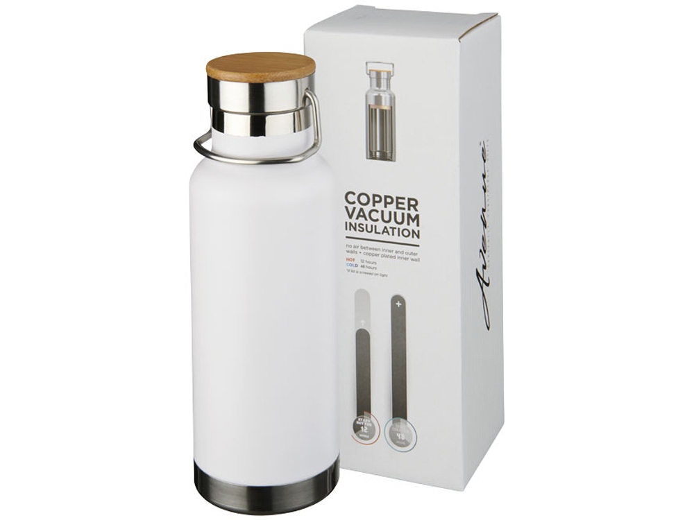 Медная спортивная бутылка с вакуумной изоляцией Thor объемом 480 мл. Не содержащая пластика бутылка из нержавеющей стали. Двустенная вакуумная конструкция из нержавеющей стали с медной изоляцией позволит вашему напитку оставаться холодным в течение 48 часов и горячим — как минимум 12 часов. Кроме того, конструкция препятствует образованию конденсата на внешней стороне бутылки. Закручивающаяся крышка с деревянной деталью. Современное, долговечное покрытие из порошкового материала. Объем — 480 мл. Упакована в подарочной коробке Avenue. Нержавеющая сталь.