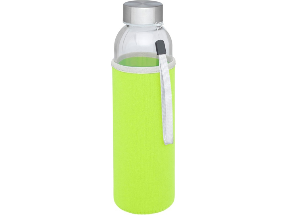 Стеклянная бутылка с одинарными стенками и съемной крышкой. На крышке есть ремешок для легкой переноски, кроме того имеется чехол из неопрена. Рекомендуется использовать для холодных напитков. Не замораживать, не разогревать в микроволновой печи. Объем 500 мл. Уложена в подарочную коробку.