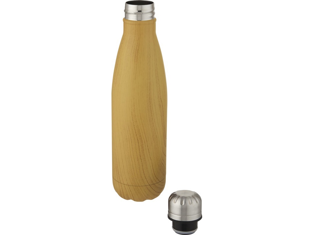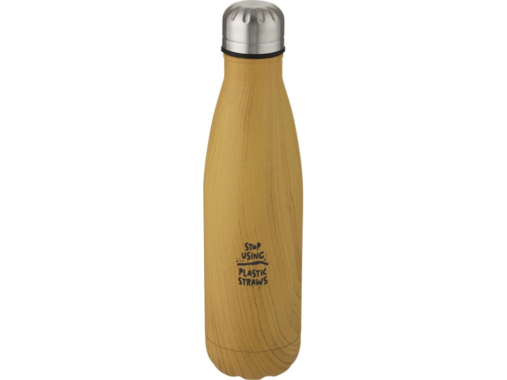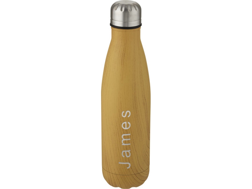 Бутылка из нержавеющей стали с вакуумной изоляцией с культовым дизайном и отделкой под дерево. Благодаря изоляции и нержавеющей стали 18/8 напитки несколько часов остаются горячими или холодными. Не содержит БФА, испытана и одобрена в соответствии с немецким законодательством о безопасности пищевых продуктов (LFGB). Проверена на содержание фталатов и одобрена для использования в соответствии с правилами REACH. Эта элегантная бутылка для воды, основание которой помещается в большинство подстаканников, является идеальным рекламным продуктом. Объем 500 мл. Рекомендуется мыть вручную. В подарочной коробке из переработанного картона.
