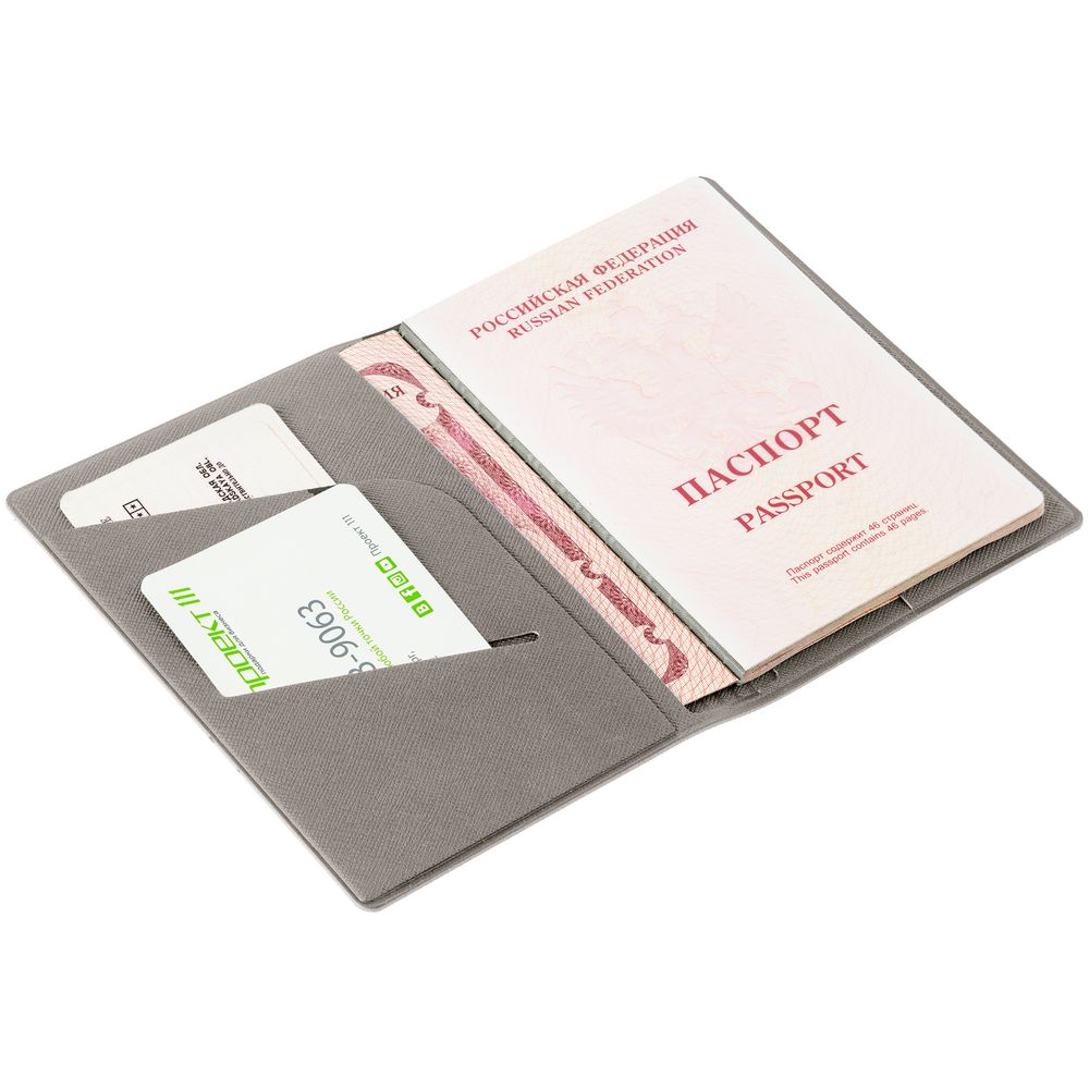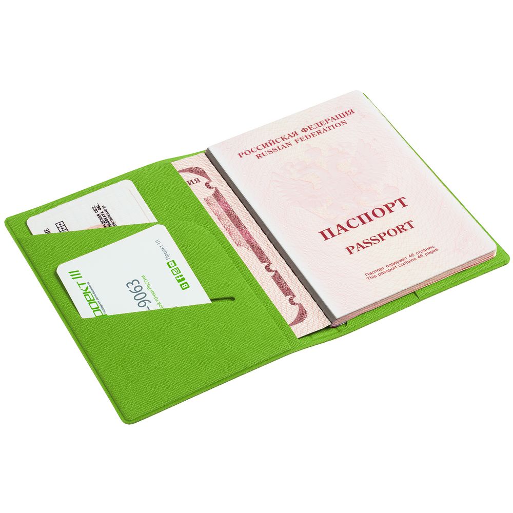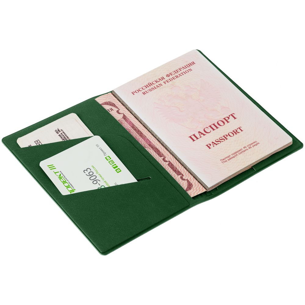 Обложка из искусственного материала, имитирующего сафьяновую кожу, с дополнительными карманами для визиток, полиса ОМС или записок.