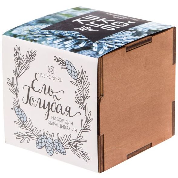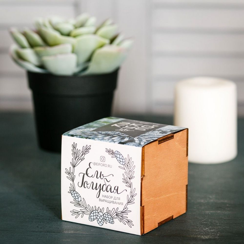 В наборе: деревянный куб, бумажный стаканчик, питательный грунт, семена, вермикулит.