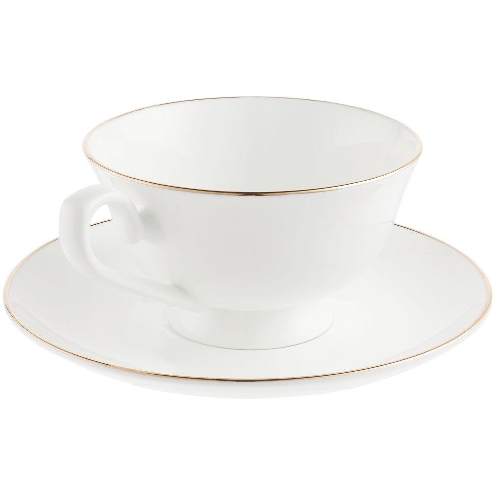 Изящная пара с тонкими стенками и золотистой каймой. Емкость чашки 220 мл. Поставляется в белой картонной коробке. Не рекомендуется мыть в посудомоечной машине. Не рекомендуется использовать в микроволновой печи.