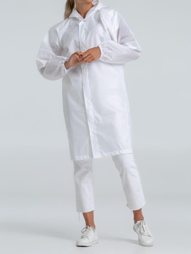 -Плащ-дождевик из ткани оксфорд на кнопках с капюшоном.