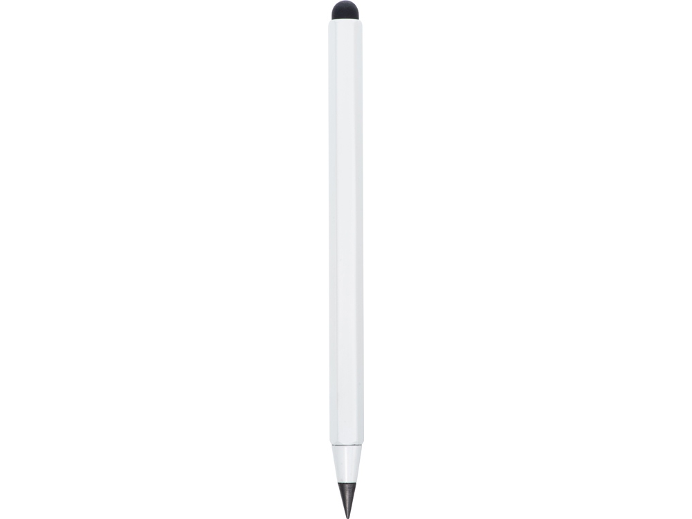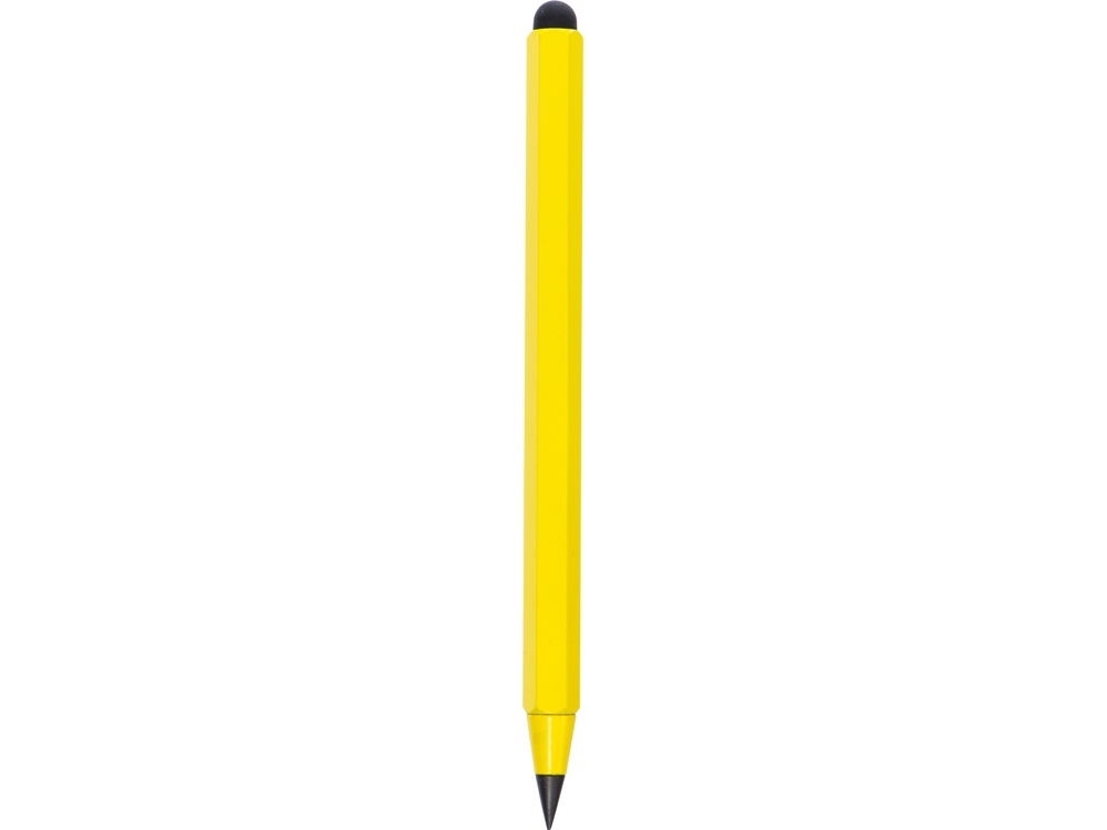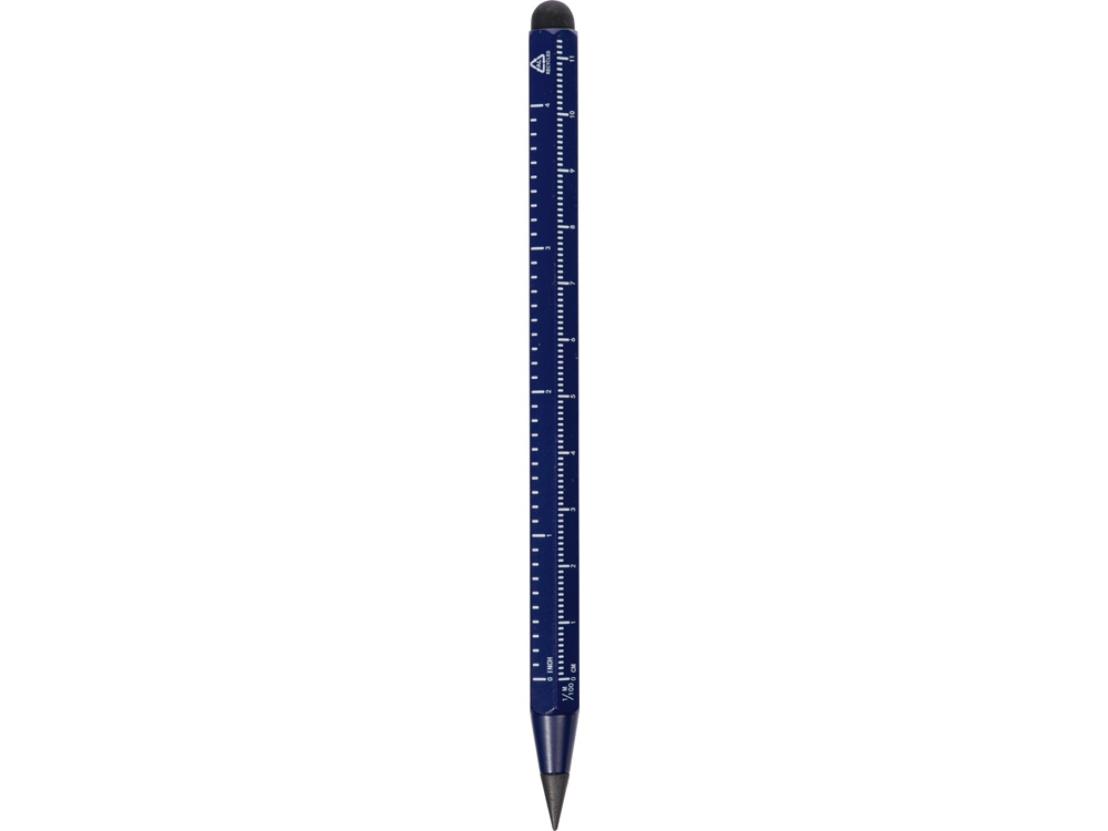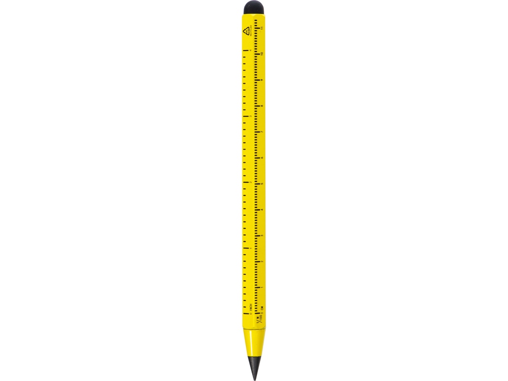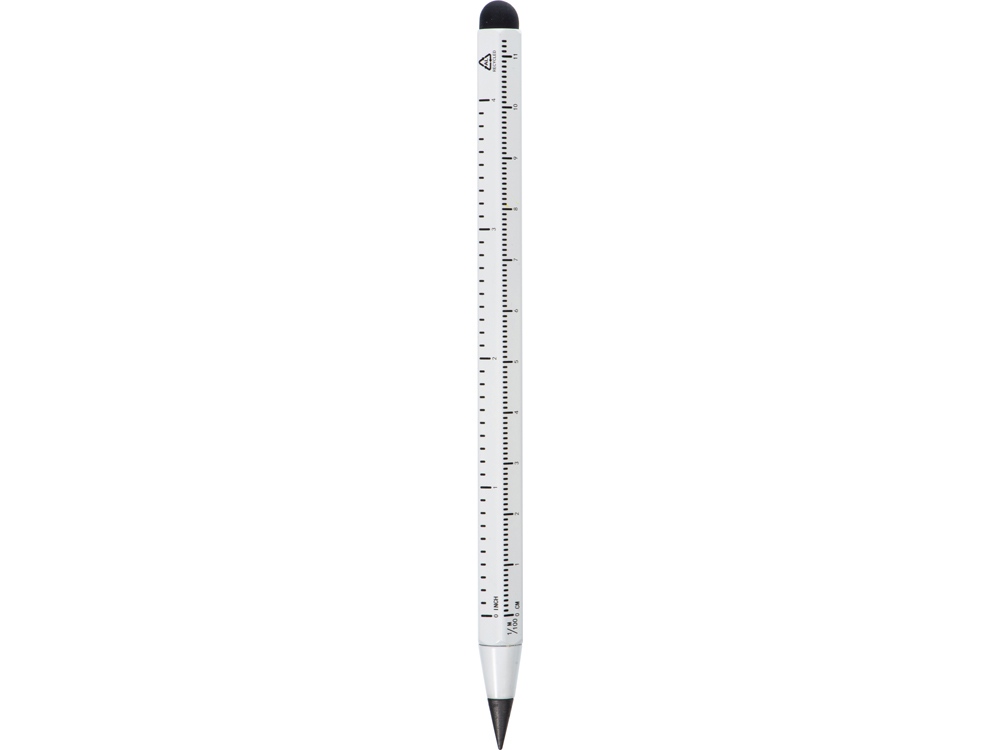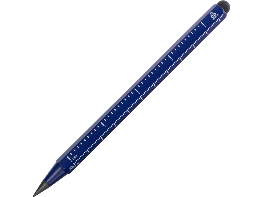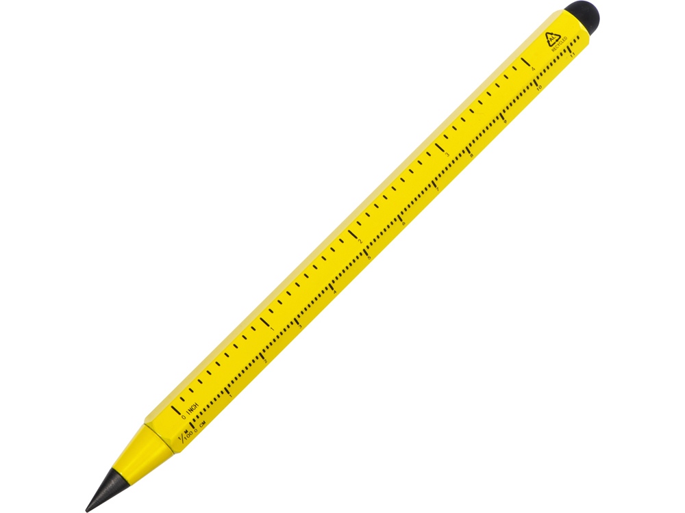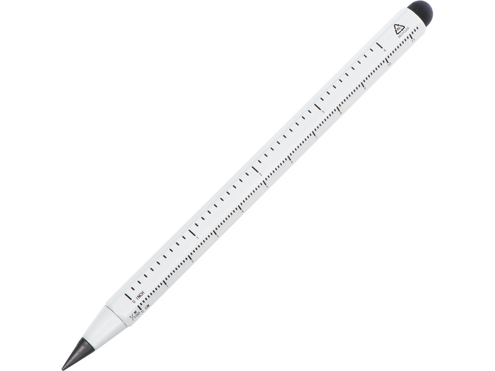 Карандаш изготовлен из переработанного алюминия. В отличие от обычных карандашей он не ломается, не пачкает руки, его не нужно точить. Наличие на корпусе двух линеек, в сантиметрах и в дюймах, позволит при необходимости моментально измерить что-либо или перевести одни единицы в другие. С обратной стороны карандаша есть стилус, которым удобно что-то делать на телефоне или планшете. • Долго служит • Не нужно точить • Наличие шкал на линейке в сантиметрах и дюймах • Стилус на обратном конце