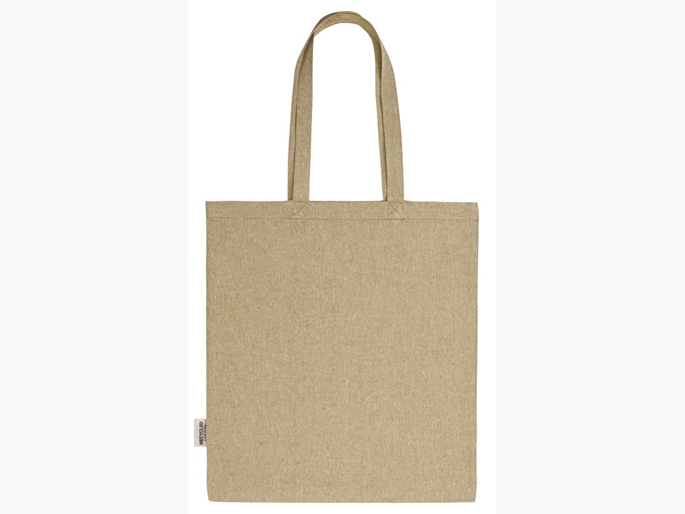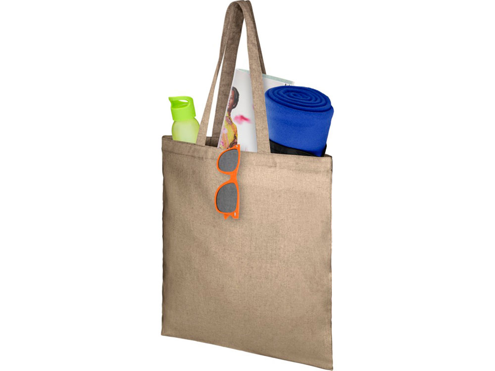 Сумка-тоут из переработанного хлопка 150 г/м² с ниспадающей ручкой длиной 30 см. Эта сумка легко складывается для ее удобного хранения. Идеальная сумка для различных целей, включая покупки в магазинах, однодневные поездки или рукоделие. Из-за особенностей переработанного хлопка цвета могут немного варьироваться. Это придает сумке оригинальный вид.