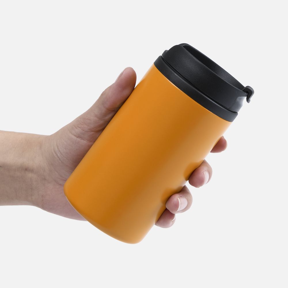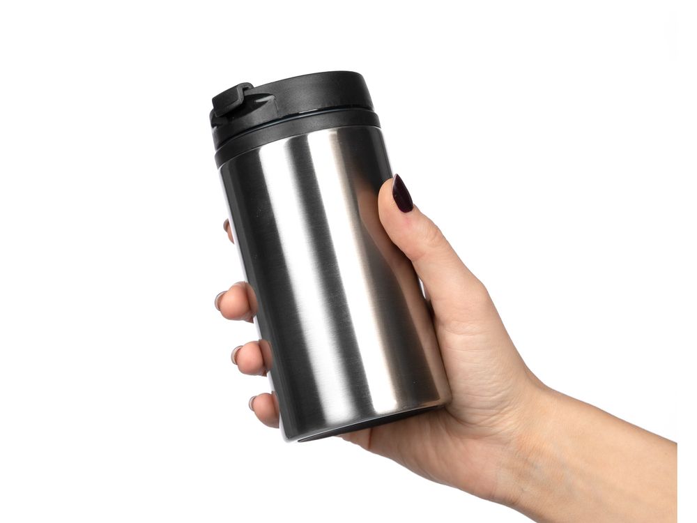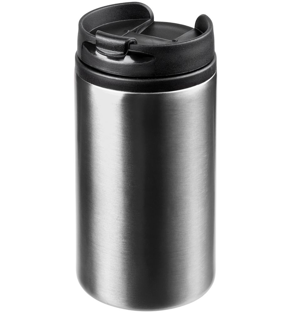 Миниатюрный термостакан для стандартной порции чая или кофе, которую не успеваешь выпить горячей в суете офисных будней. Ровная цилиндрическая поверхность позволяет сделать на кружке круговую гравировку — больше места для выражения идей, мыслей и эмоций. Емкость 250 мл. Двухслойная конструкция из пищевого пластика внутри и нержавеющей стали снаружи. Герметичная завинчивающаяся крышка с откидным клапаном для питья. Подходит для большинства автомобильных подстаканников. Крышку можно мыть в посудомоечной машине, корпус рекомендуем мыть вручную. Изменение температуры напитка внутри закрытого стакана: При температуре окружающей среды +20 °С •начальная температура — 95 °С •через 1 час — 65 °С •через 2 часа — 50 °С