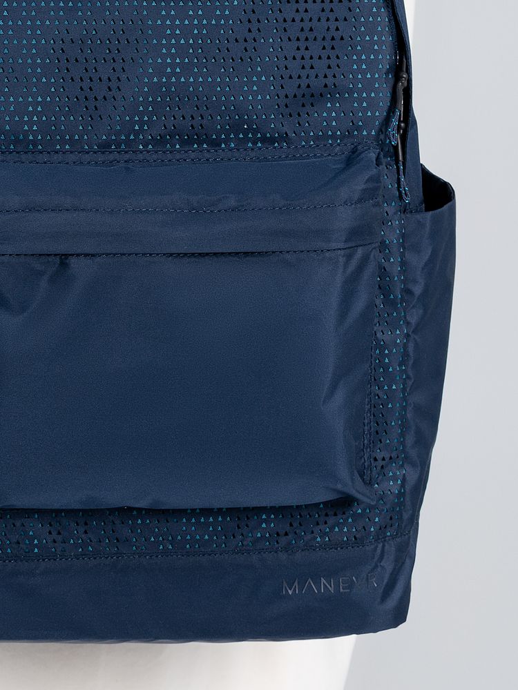 Выдерживает нагрузку до 12 кг. Вместительное центральное отделение с карманом на спинке. Передний карман на молнии. Два боковых кармана. Мягкая спинка. Регулируемые лямки.