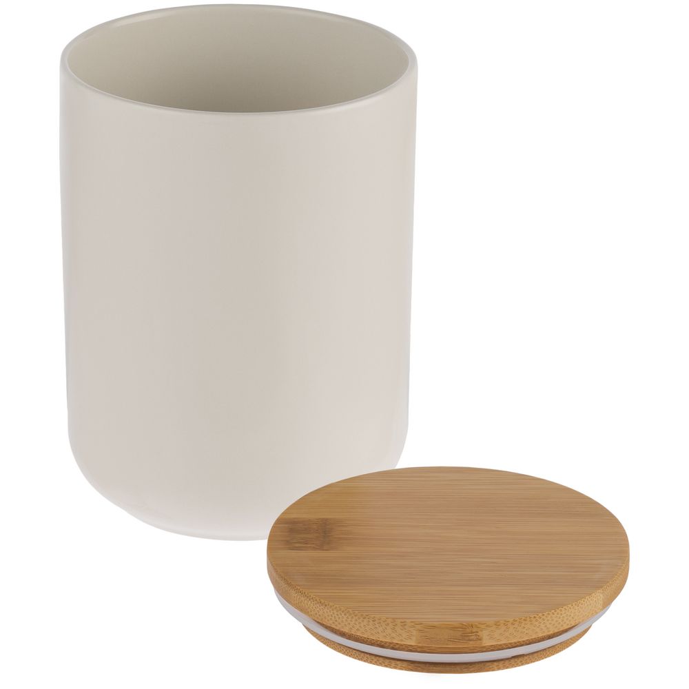 Фарфор и бамбук — идеальная пара для светлой современной кухни. Силиконовый уплотнитель надежно защищает содержимое банки от влаги и посторонних запахов. Подходит для хранения круп и сыпучих продуктов. Емкость 900 мл. Упакована в коробку.