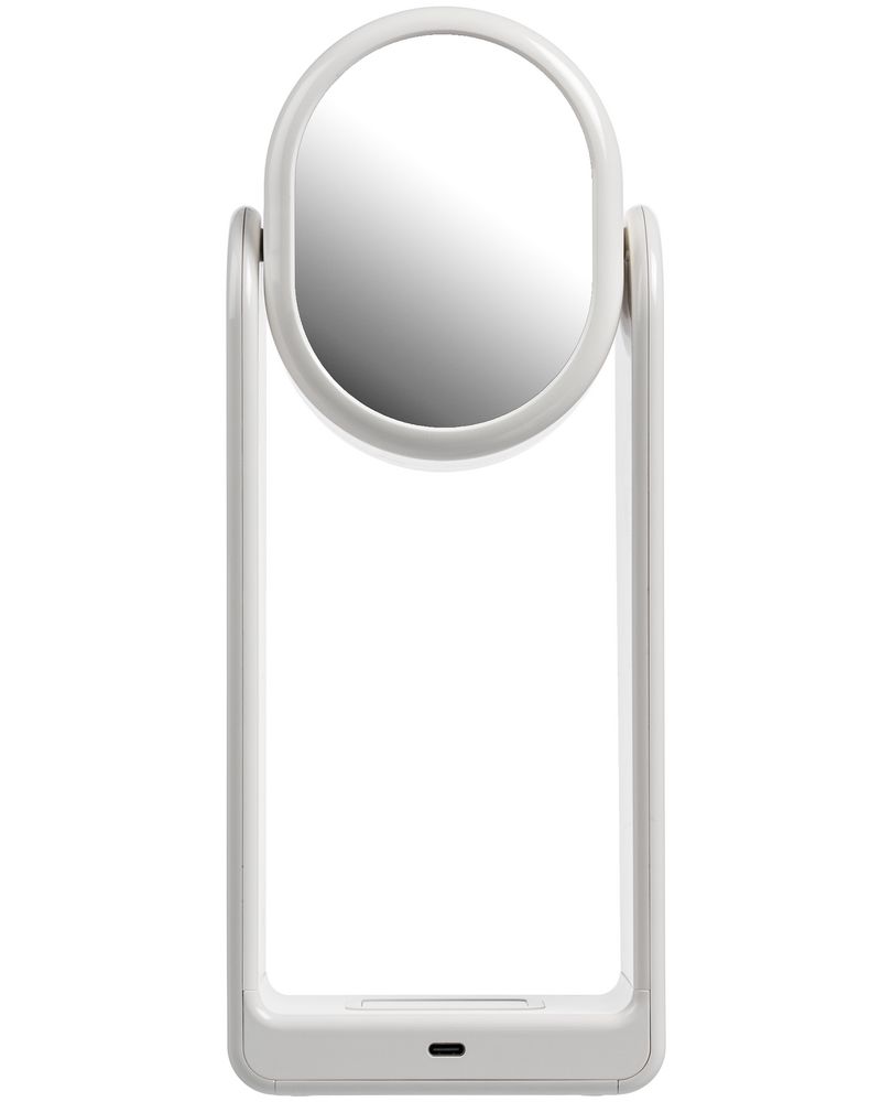 Настольная лампа с зеркалом и беспроводной зарядкой Tyro — это многофункциональное устройство: это и станция для беспроводной зарядки, и настольная лампа, и компактное зеркало. Совместима со всеми мобильными устройствами, поддерживающими технологию беспроводной зарядки Qi. Зарядка начнется автоматически при размещении смартфона на индукционной площадке. Лампа имеет три режима яркости, которые настраиваются в зависимости от индивидуальных потребностей. С обратной стороны лампы расположено зеркало, которое поможет в любой момент убедиться, что вы на свете всех милее. Беспроводная зарядка устройств. Вход: 5 В, 2 A. Выход беспроводной зарядки: 5 В,1 A. Три уровня регулируемой яркости лампы. Встроенное зеркало. Поставляется в подарочной упаковке.