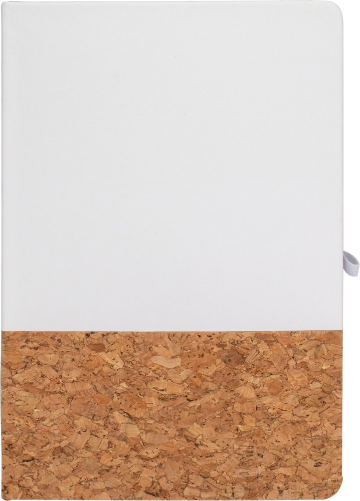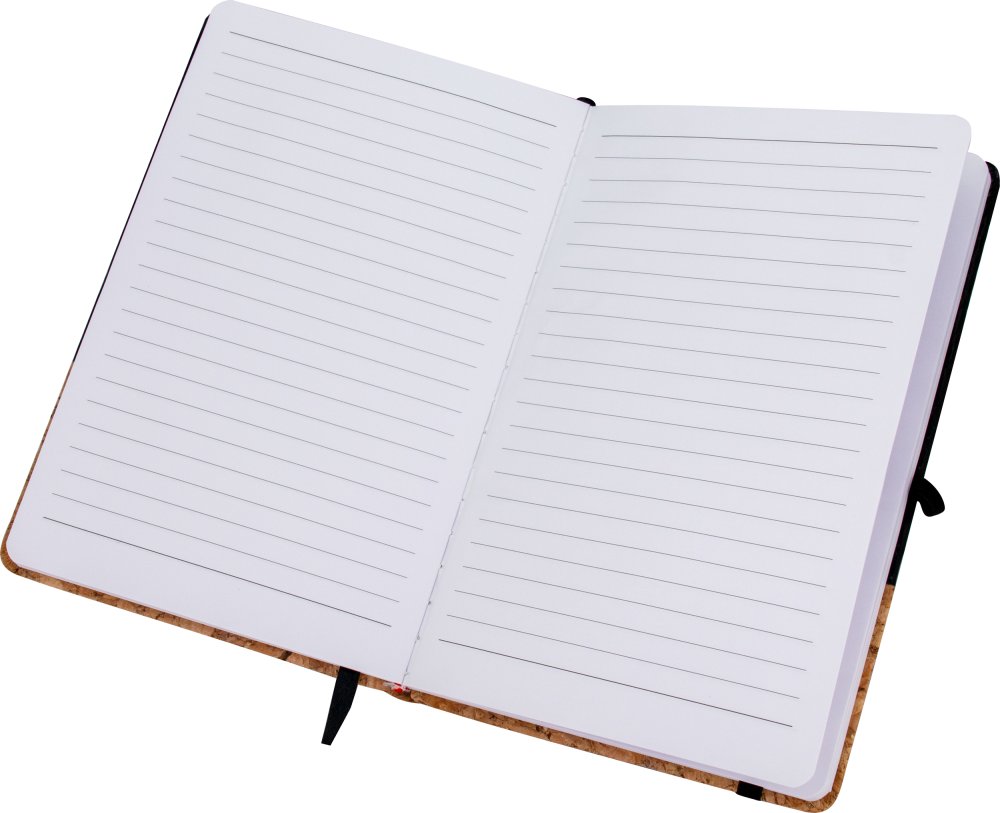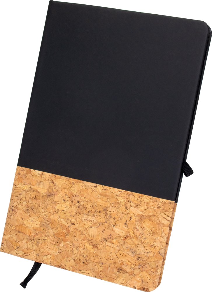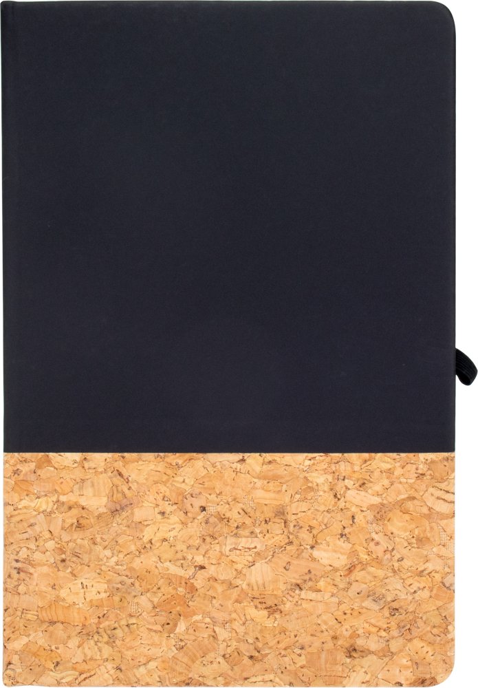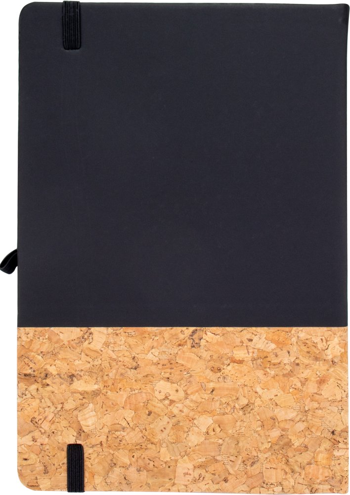 Блокнот А5 NANTES с обложкой из пробки. Ляссе и резинка черного цвета. Ляссе, резинка застежка и петля-резинка для ручки в тон обложки. 160 страниц в линейку.