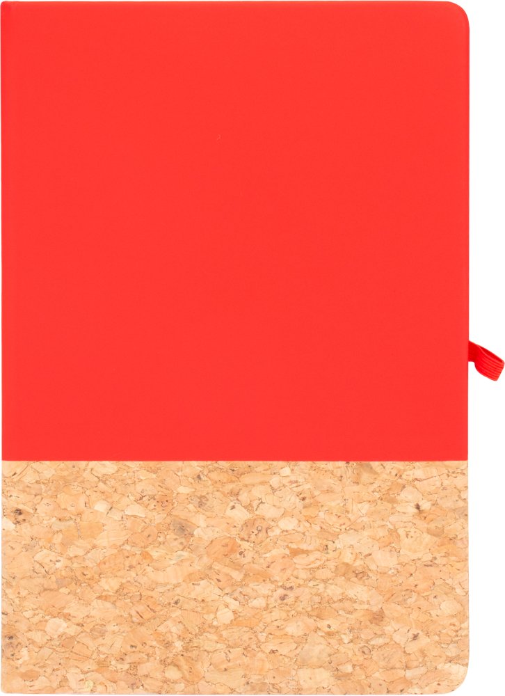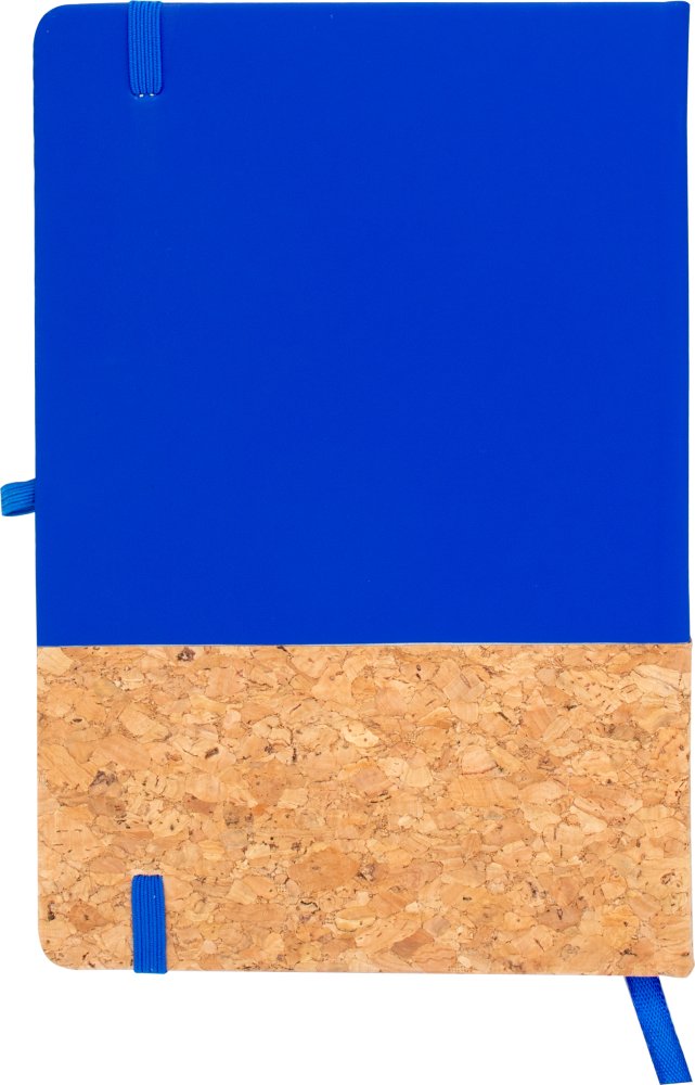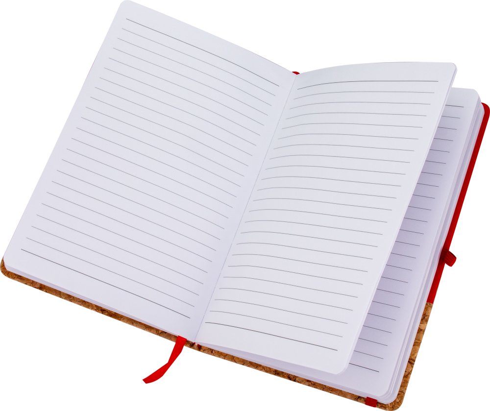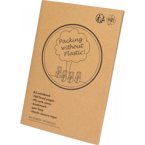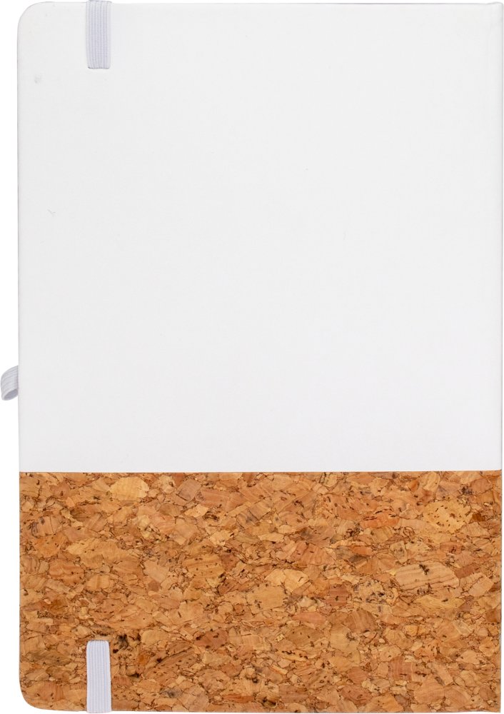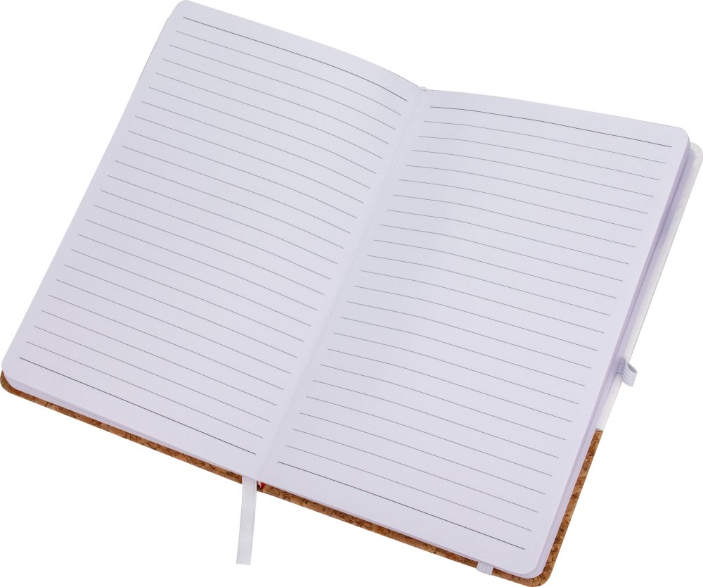Блокнот А5 NANTES с обложкой из пробки. Ляссе и резинка черного цвета. Ляссе, резинка застежка и петля-резинка для ручки в тон обложки. 160 страниц в линейку.