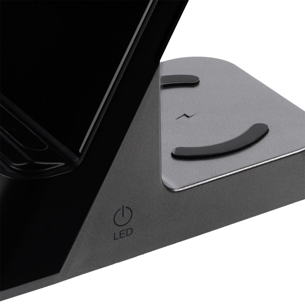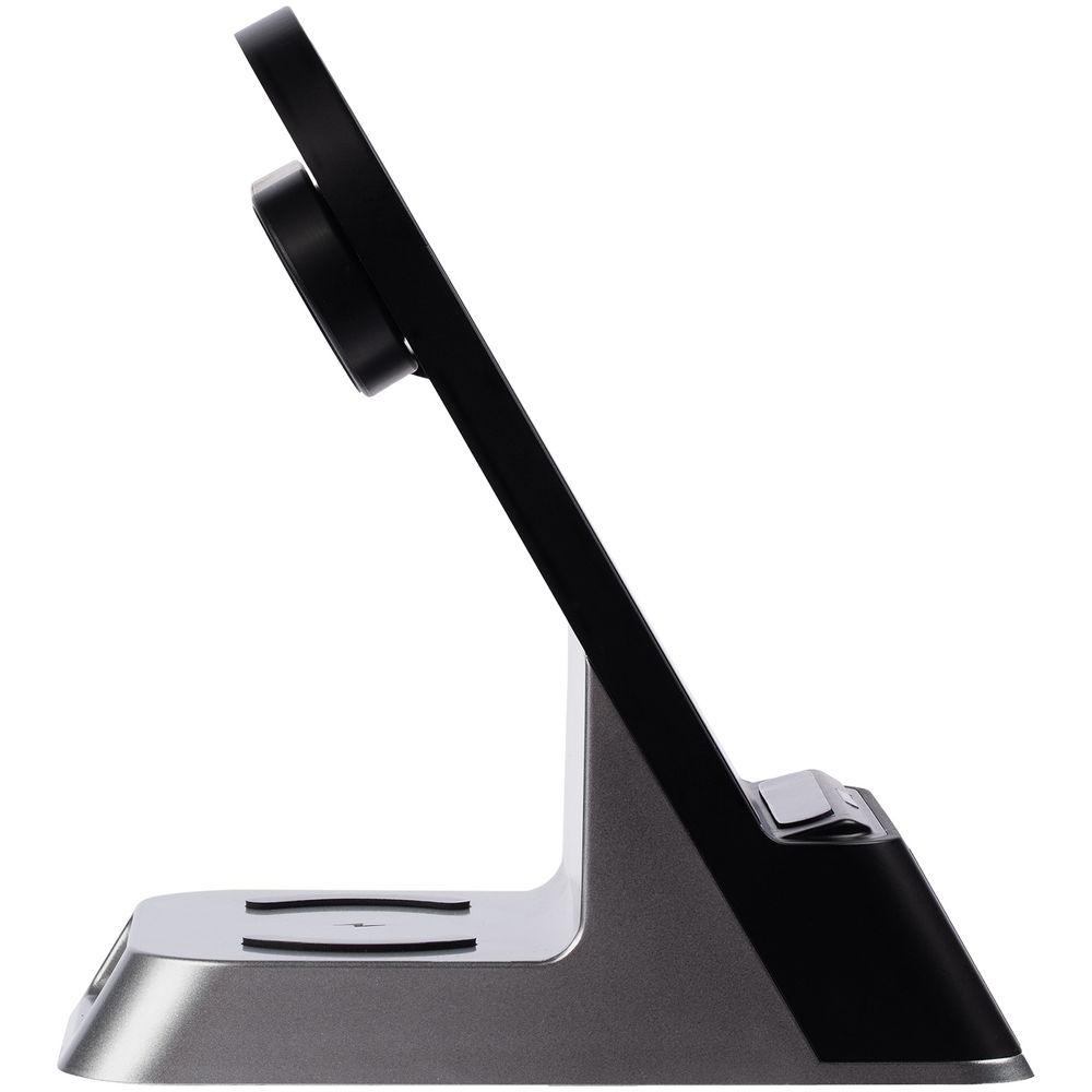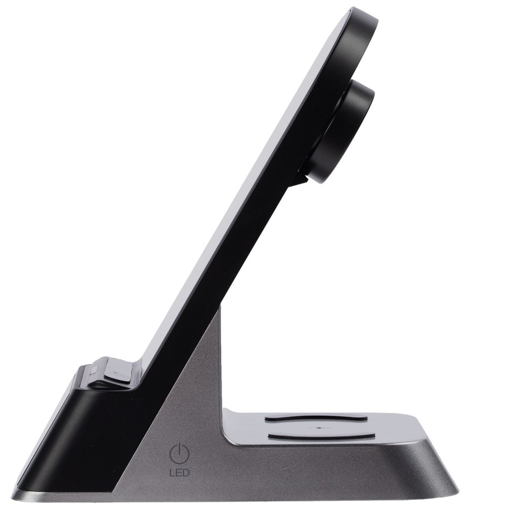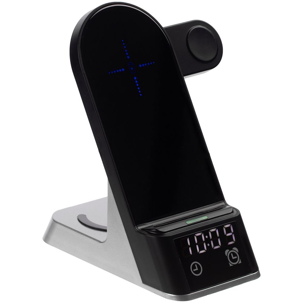 E-Store — многофункциональное устройство, которое сочетает в себе функции станции беспроводной зарядки разнообразных устройств и электронного будильника. Зарядная станция совместима со всеми смартфонами, поддерживающими технологию беспроводной зарядки Qi. Также предусмотрено место для зарядки часов Apple Watch и всех типов наушников с поддержкой Qi. Зарядка начнется автоматически при размещении устройств на индукционной площадке. Компактный размер позволяет разместить E-Store как на рабочем столе, так и на прикроватной тумбе. •Беспроводная зарядка стандарта Qi •Зоны беспроводной зарядки для смартфона, наушников и часов •Вход: 9 В, 2 A; 12 В, 2 A •Выход беспроводной зарядки: - смартфон: 15 Вт - наушники: 3 Вт - часы: 2,5 Вт •Выход зарядки USB: 5 Вт •Электронный дисплей •Настольные часы и будильник •Работает при питании от сети •Адаптер питания и кабель в комплекте Поставляется в индивидуальной упаковке. Внимание! Не все модели смартфонов, часов и наушников поддерживают функцию беспроводной зарядки.