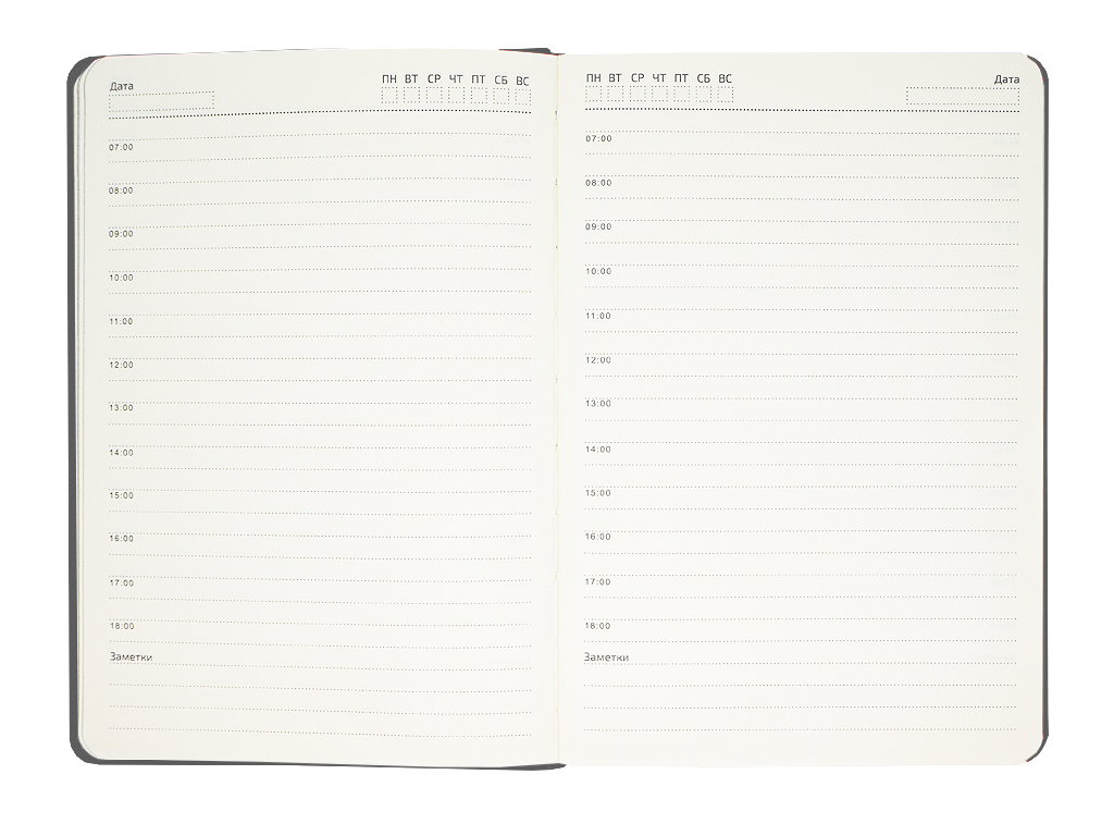• Страницы матовые, со скругленными уголками, бежевого цвета. Плотность бумаги 70 гр/м2.