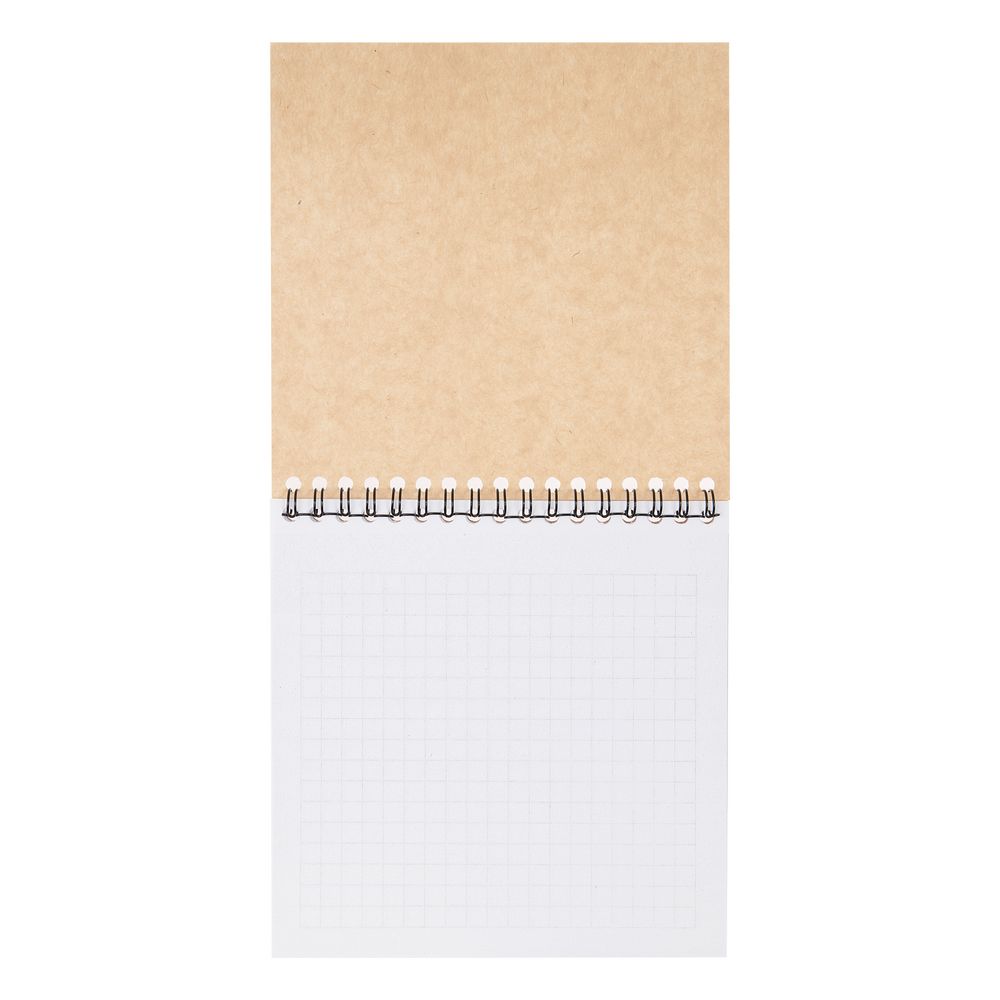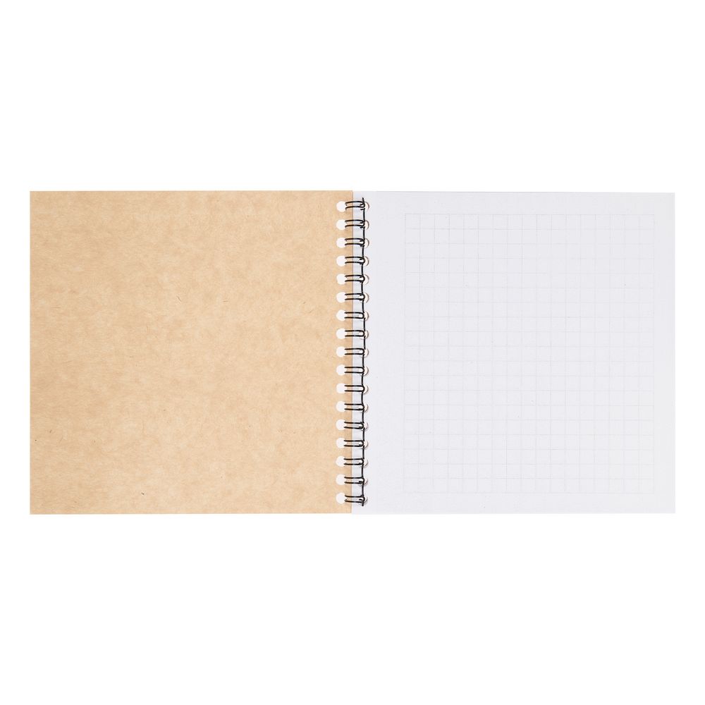 Блокнот с обложкой из картона Natural Kraft плотностью 240 г/м².В блоке 40 листов в клетку из офсетной бумаги плотностью 70 г/м².
