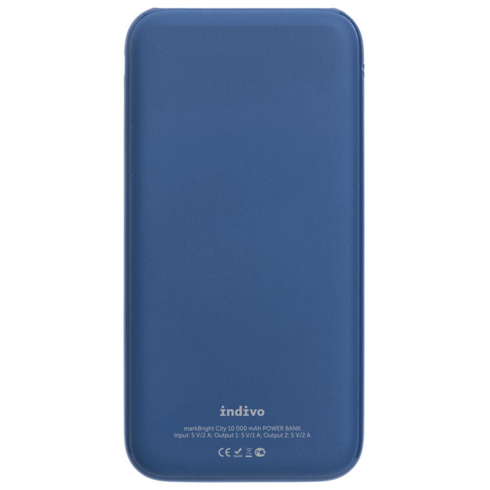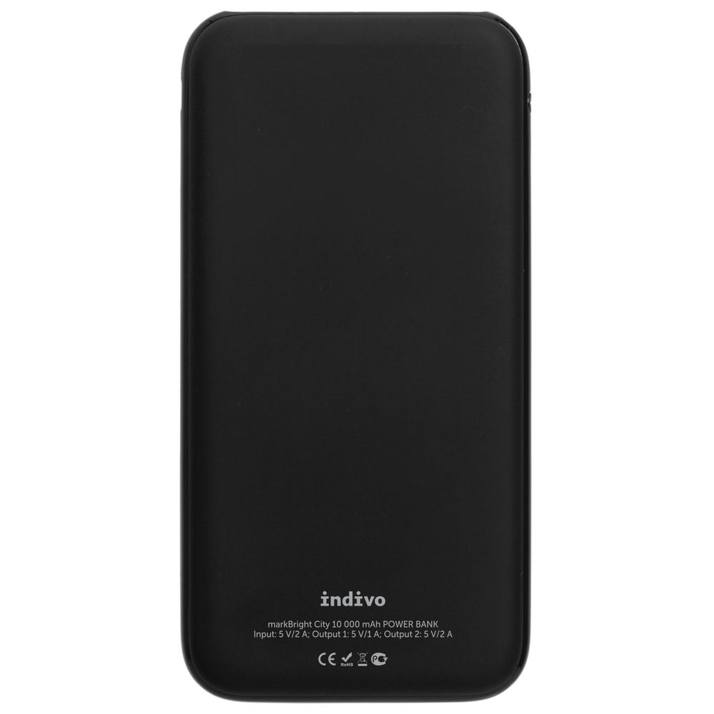 Удобный тонкий корпус с покрытием софт-тач и прекрасные возможности для нанесения логотипа — с подсветкой — превращают markBright City в функциональный инструмент для продвижении бизнеса. На лицевую поверхность может быть нанесено полноцветное изображение, а гравировка, хотя она и будет одноцветной, сопровождается равномерной белой подсветкой. Для наилучшего результата рекомендуем сочетать цветные элементы УФ-печати с тонкими линиями гравировки.Белая подсветка выгравированного изображенияЛитий-полимерный аккумуляторЕмкость: 10 000 мАчКоличество циклов заряда-разряда: не менее 500Входные параметры:– Micro USB: 5 B/2 AВыходные параметры:– Выход 1: 5 B/1 A– Выход 2: 5 B/2 AВремя заряда: 6–7 часовВ комплекте кабель с разъемами Type-C, Micro USB и Lightning iPhone 5/6/7/8/X/XS/11