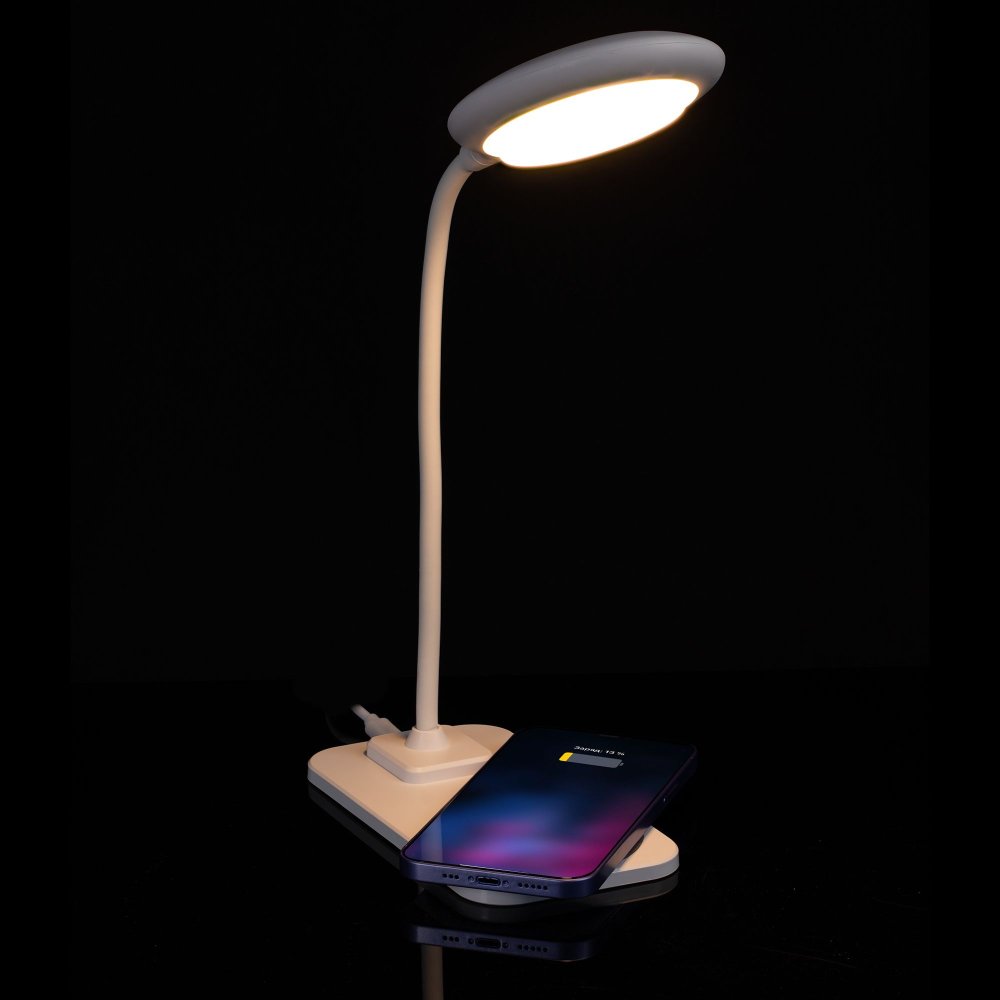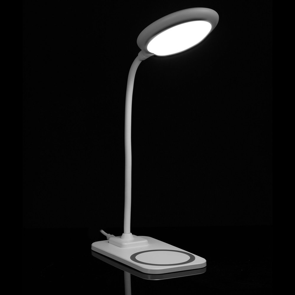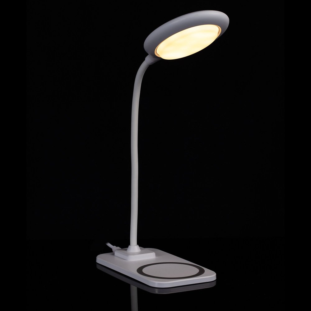 Лампа Modicum — функциональный гаджет для дополнительного освещения и беспроводной зарядки устройств. Лампа совместима со всеми мобильными устройствами, поддерживающими технологию беспроводной зарядки Qi. Зарядка начинается автоматически при размещении смартфона на основании лампы. Свет от лампы может быть теплым, холодным или смешанным: доступны три режима с разной цветовой температурой и регулировкой яркости. •Беспроводная зарядка •Вход: 5 В,2 A; 9 В, 2 A •Выход беспроводной зарядки: 15 Вт •Теплый, холодный и смешанный свет •Количество светодиодов: 23 шт. •Сила света: 640 лм (макс) •Температура света: 3000–6500 К •Гибкое основание лампы •Блок питания и кабель в комплекте Поставляется в индивидуальной упаковке. Внимание! Не все модели смартфонов поддерживают функцию беспроводной зарядки.