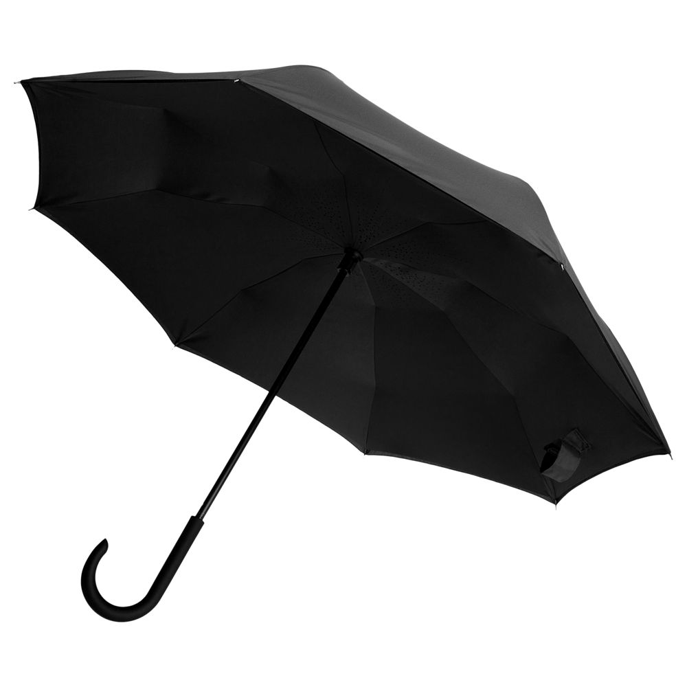 Это зонт-наоборот, зонт-наизнанку. Складываясь после дождя, он прячет мокрую поверхность в себя, а сухая остается снаружи. Для просушки его можно не только подвесить за ручку, как обычные зонты, но и поставить прямо на пол в полусложенном состоянии. Итог — мягкая щадящая просушка и минимум занятого мокрым зонтиком места. Логотип наносят как на внутренний, так и на наружный купол. Механический зонт, 8 спиц. Поставляется без чехла.