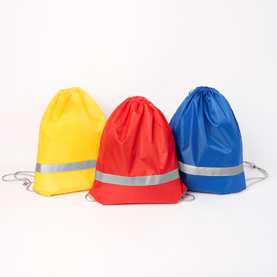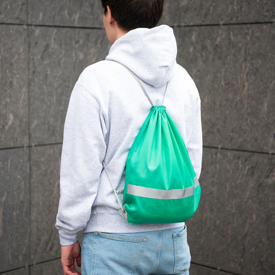 Рюкзак-мешок RAY со светоотражающей полосой спереди, светоотражающими уголками, усиленными металлическими люверсами.