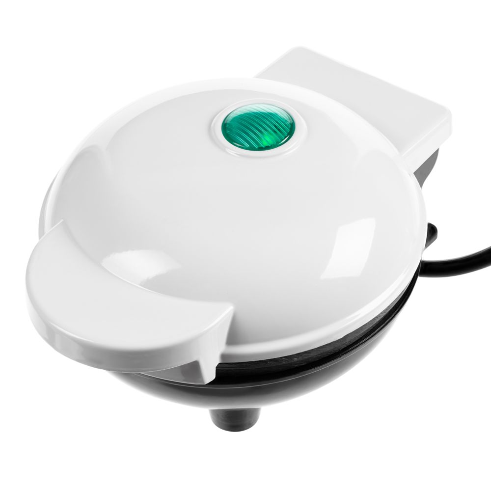 С электрической вафельницей GoRound готовить вафли — одно удовольствие!Поверхность обеспечивает равномерное и быстрое приготовление вафель, а антипригарное покрытие позволяет использовать в процессе выпечки минимальное количество масла. Готовые вафли легко отстают от формы и совсем не прилипают.Электровафельница проста в использовании. Включите вафельницу в сеть. Загорится световой индикатор. Как только индикатор погаснет — прибор готов к работе. Откройте вафельницу, немножко смажьте маслом, налейте небольшое количество теста на нижнюю пластину. Закройте крышку. Через несколько минут все готово!Напряжение 220–240 ВМощность 350 ВтАнтипригарное покрытиеРавномерный нагревНескользящие ножкиСветовая индикация включения и нагреваРассчитана на 1 порциюВ комплекте вафельница, инструкция, коробка.