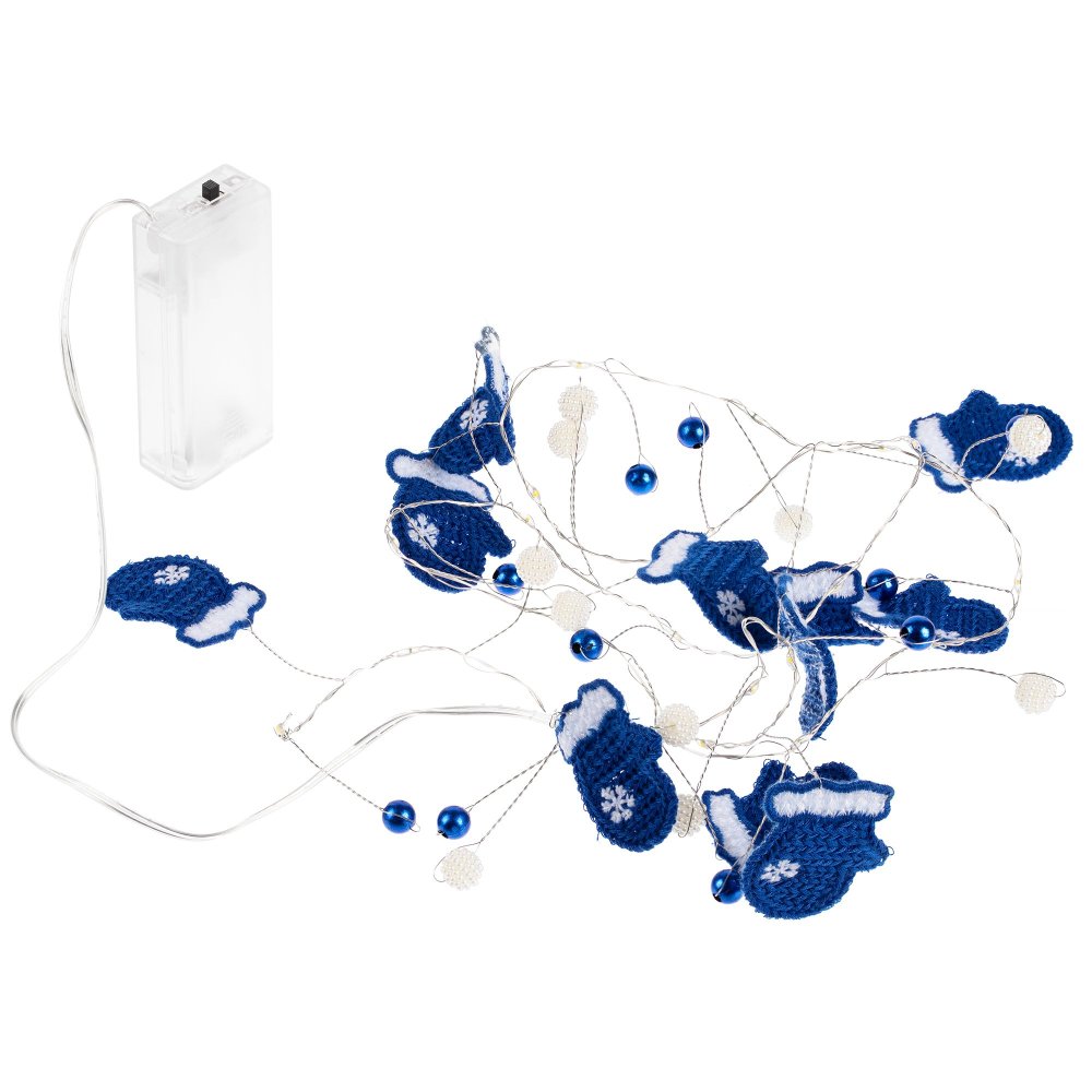 12 варежек. бусины и 20 лампочек с теплым светом.