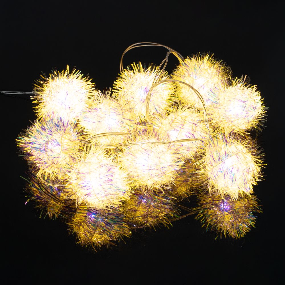 Гирлянда с мишурой Froufrou - это светящиеся милые снежки украшенные мишурой.