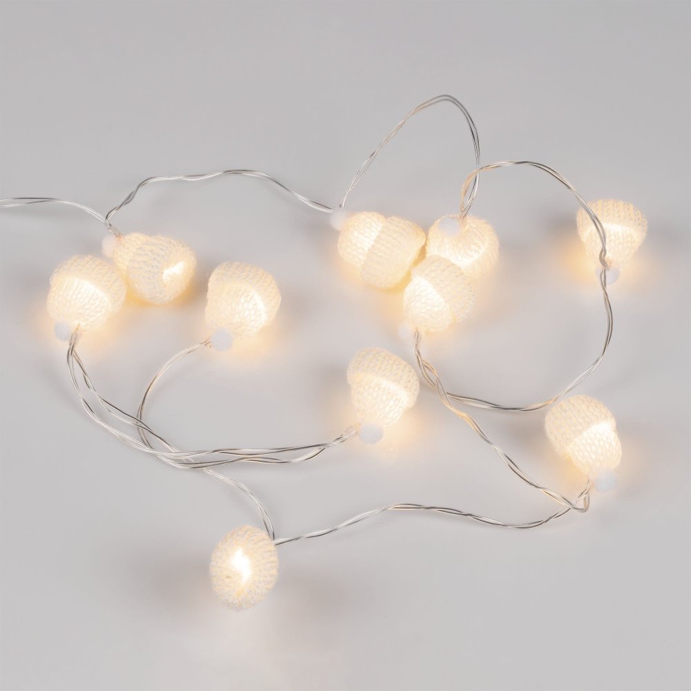 10 вязанных шапочек, а внутри лампочки с теплым светом.