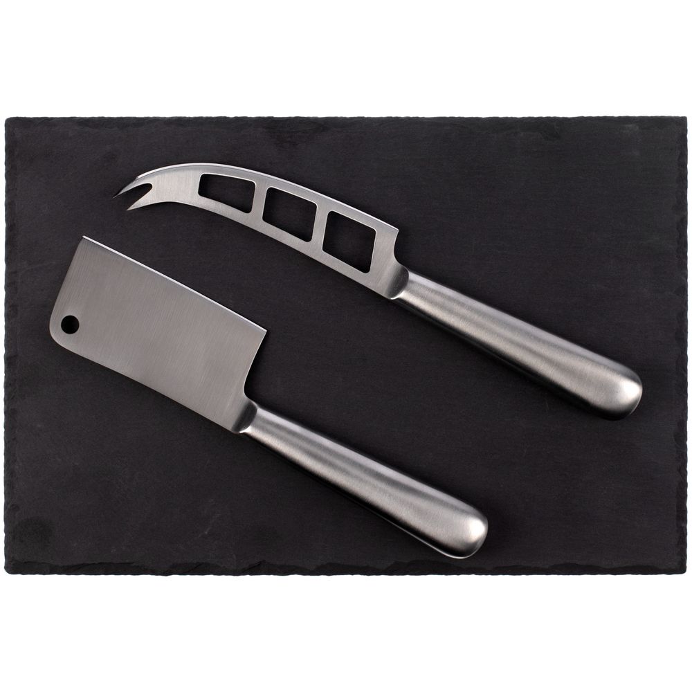 Сырный набор Tyros — отличный подарок для ценителя всех сортов сыра. Ножом-топориком легко расколоть сыры даже самых твердых сортов, а нож с воздушными карманами для сыров средней мягкости поможет справиться как с достаточно плотным чеддером, так и с нежными бри и камамбером. Отверстия на лезвии сырного ножа нужны для проникновения воздуха, который не дает слайсам мягкого сыра сминаться и прилипать к ножу при нарезке. Раздвоенный кончик выполняет роль вилки, которой удобно сервировать нарезанный сыр.Выполненная из сланца доска идеальна для подачи закусок.В комплекте сланцевая доска, нож-топорик для твердых сортов сыра, нож для сыров средней мягкости.Поставляется в индивидуальной подарочной коробке с ложементом.
