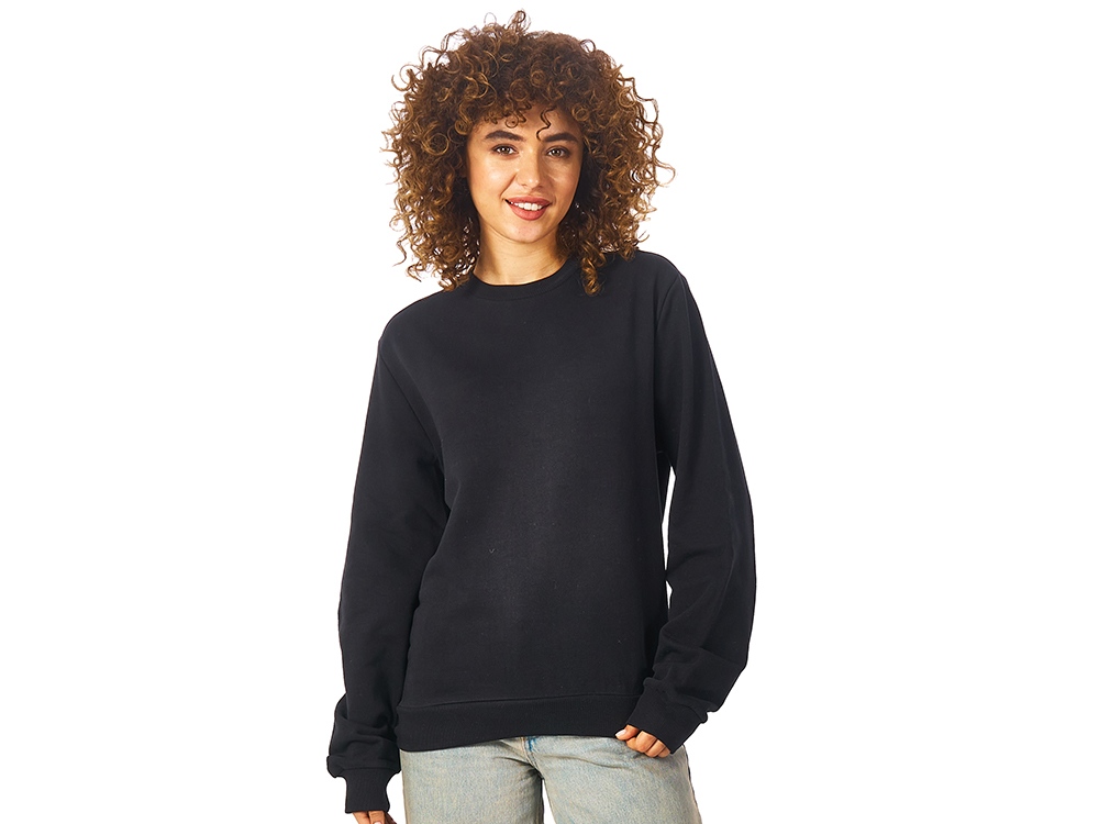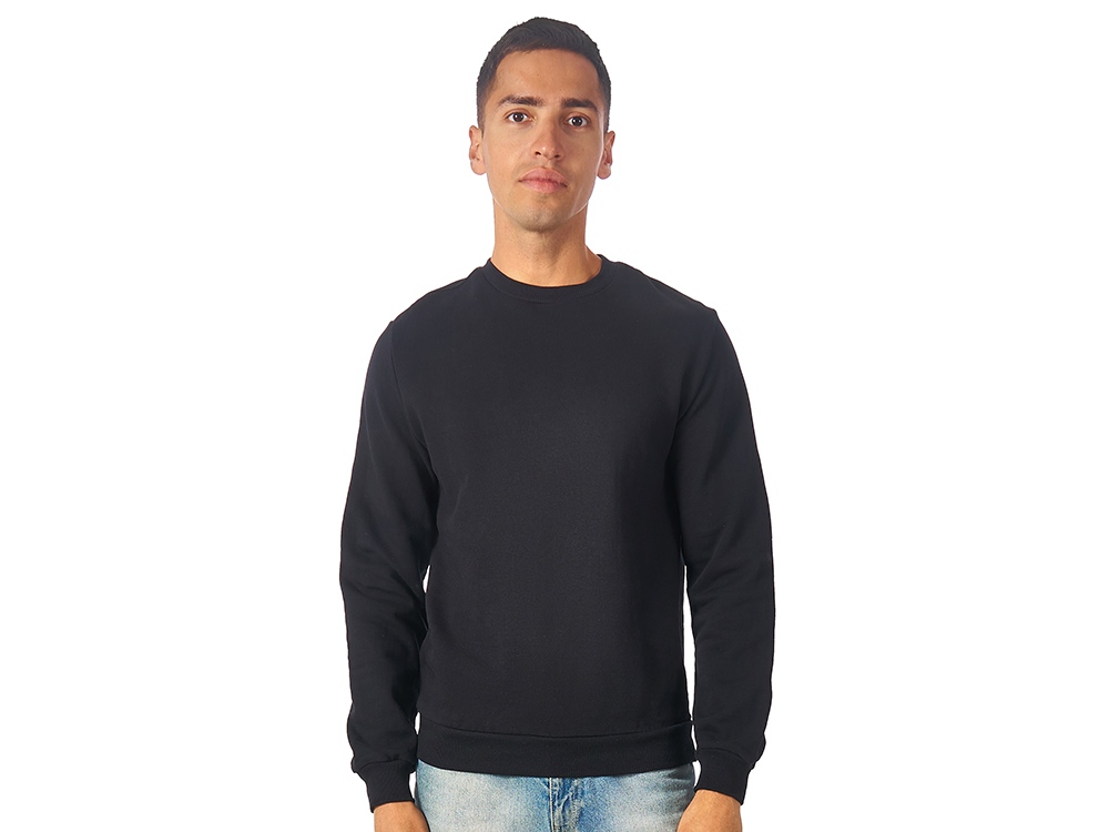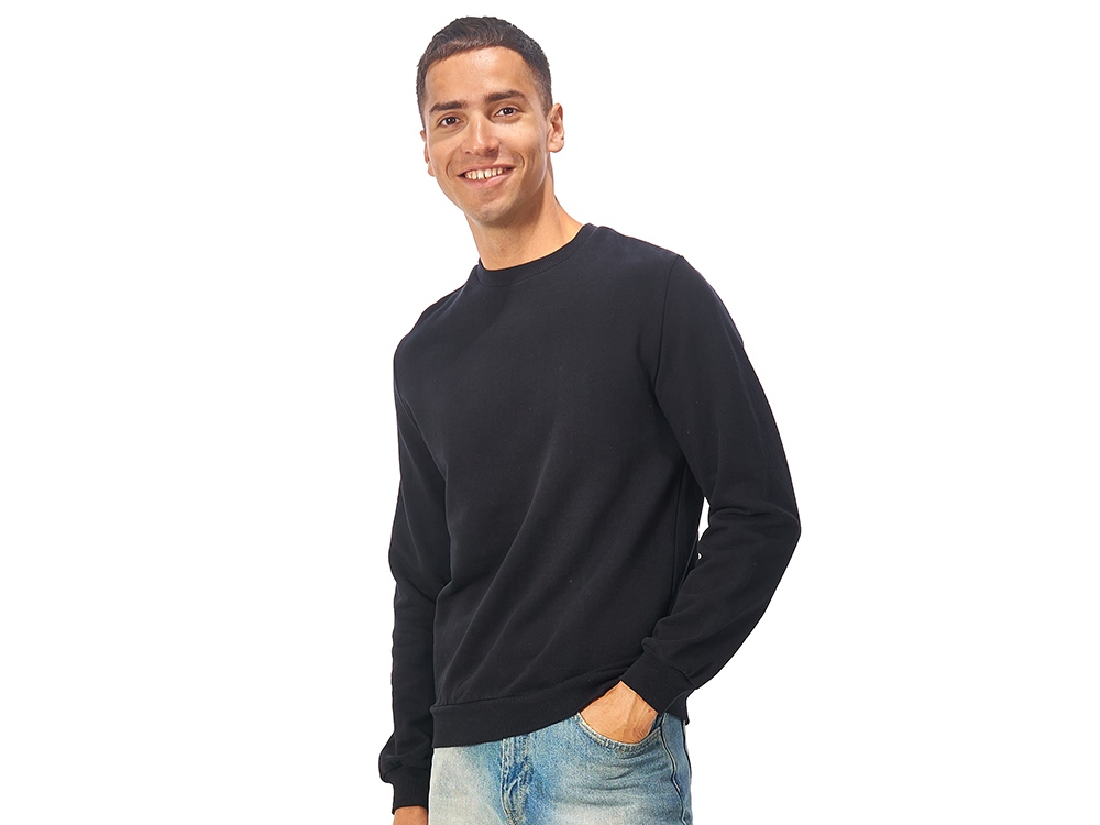 Свитшот из плотного 3х ниточного хлопкового футера. Горловина, манжеты и низ отделан рибом 2х2. Горловина спинки внутри дополнительно укреплена тесьмой с выработкой елочка. Полотно из утяжеленного хлопкового футера внутри с петельками без начеса.