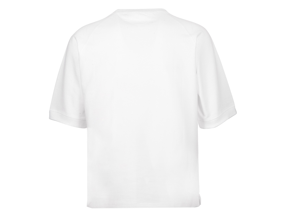 Футболка выполнена из хлопкового френч терри с петельками на изнаночной стороне. Горловина обработана рибом 2х2 и дополнительно усилена тесьмой-елочкой с внутренней стороны спинки и дополнена кокеткой по спинке для нанесения логотипа клиента. Рукав реглан продублирован рибом по низу. Разрезы в боковых швах. Гладкая поверхность полотна позволяет идеально нанести изображение. Футболка комфортного силуэта. - кокетка на внутренней стороне спинки для нанесения - комфортный силуэт - мягкое и качественное полотно френч терри