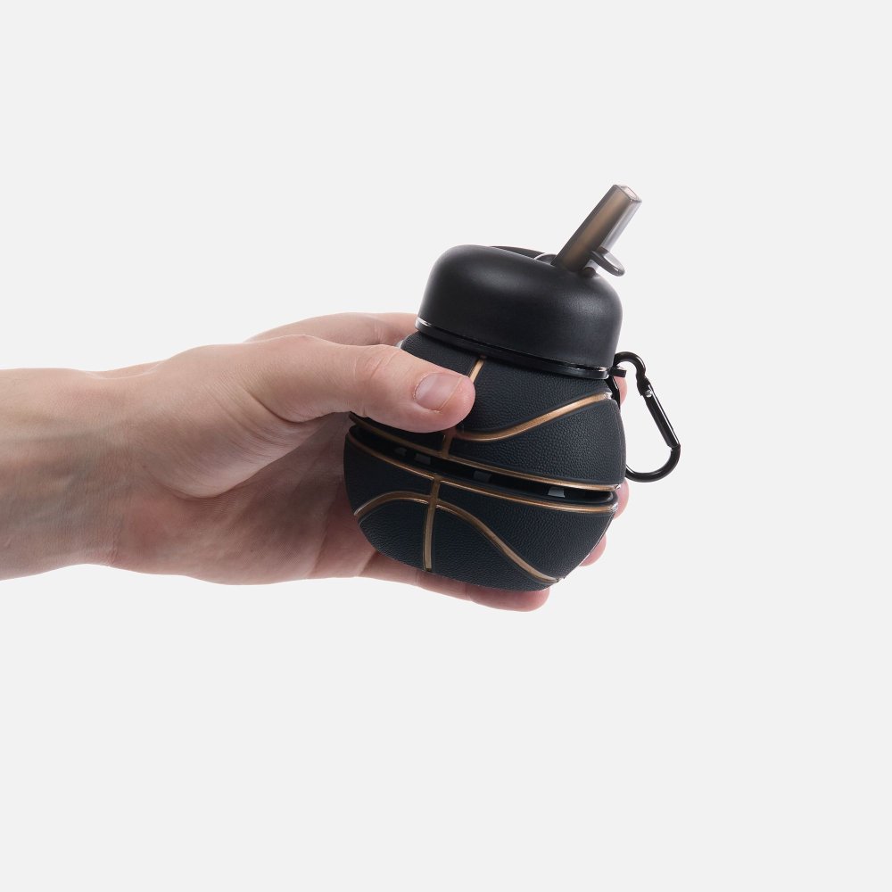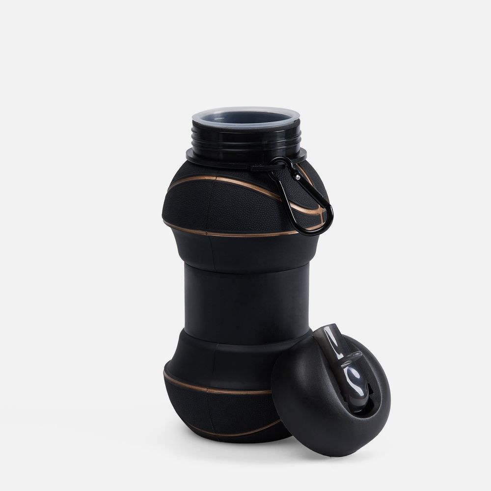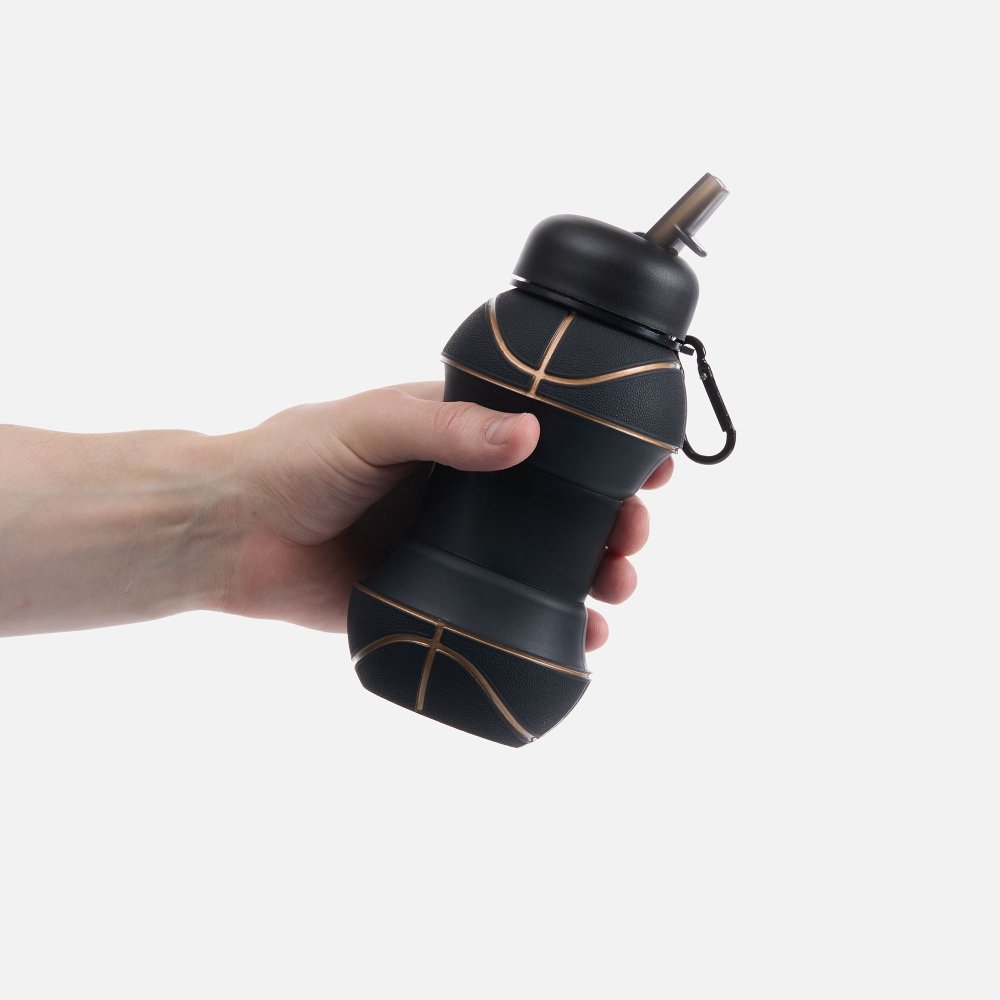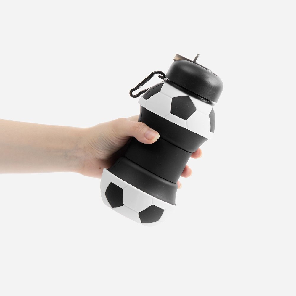 Бутылку Football Flex легко закрепить карабином на рюкзак или сумку. При складывании ее высота уменьшается вдвое.