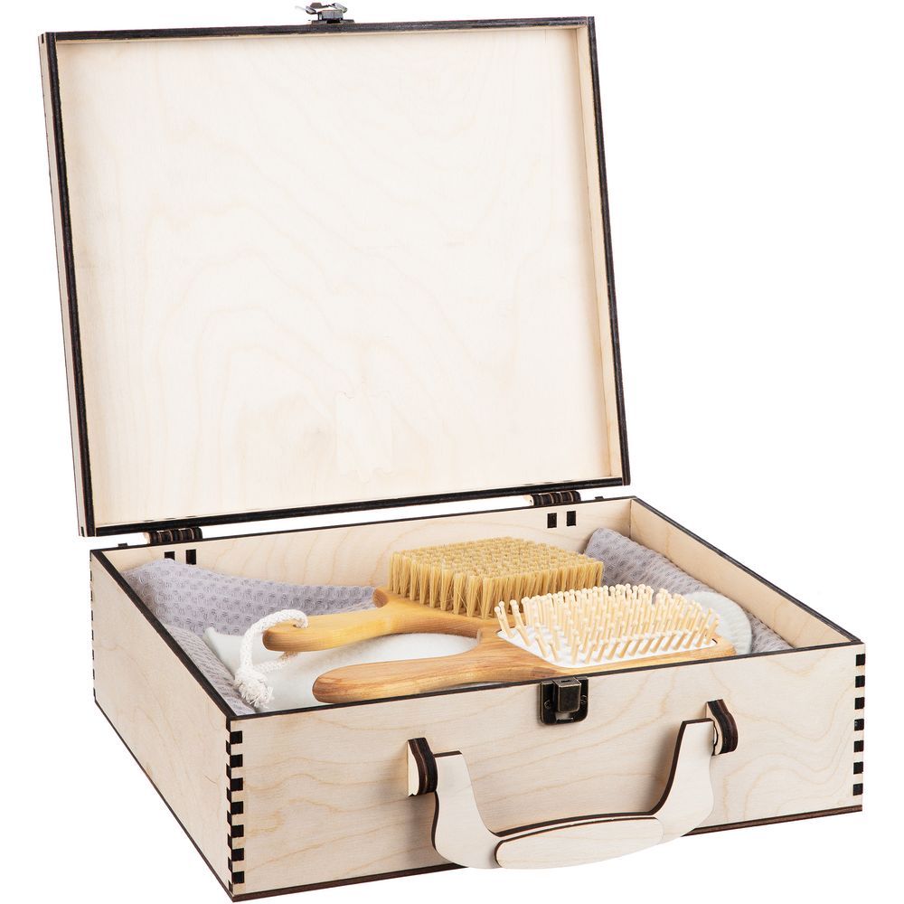 Кейс Wunderding, выполненный из березовой фанеры, станет надежной, практичной и экологичной упаковкой для самых разных подарков. Он отличается вместительностью и функциональностью. Крышка закреплена на прочных металлических петлях и фиксируется небольшим замком. Деревянный кейс с ручкой.