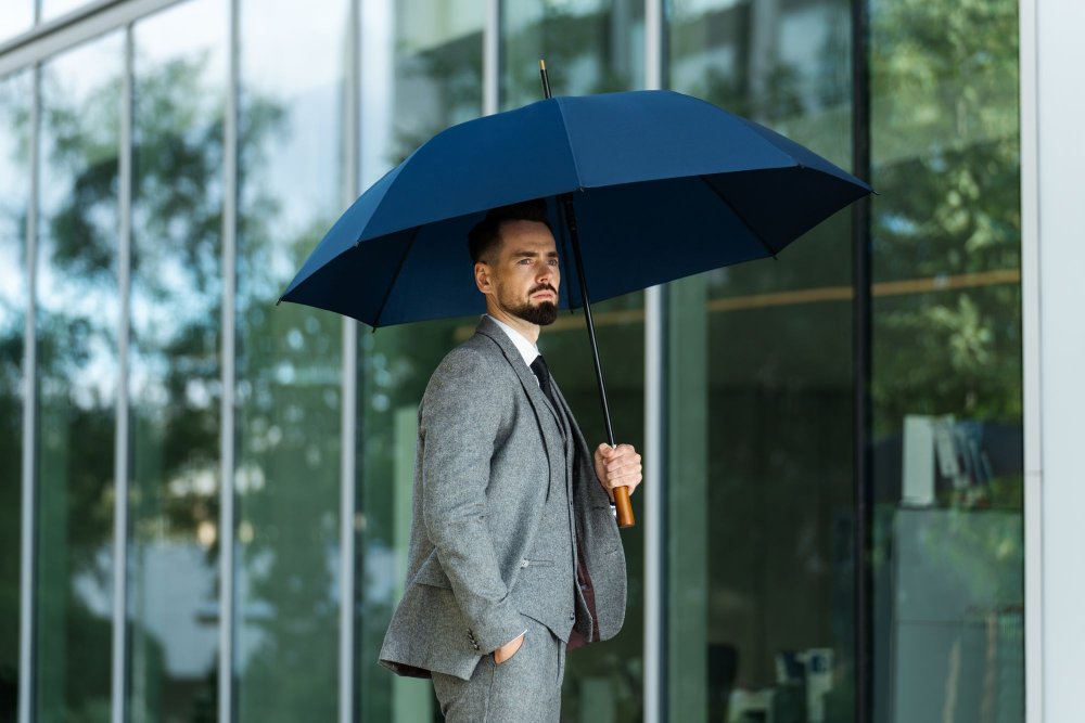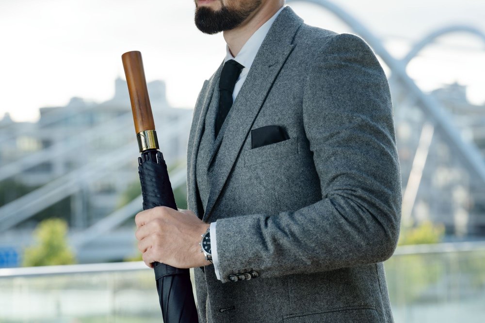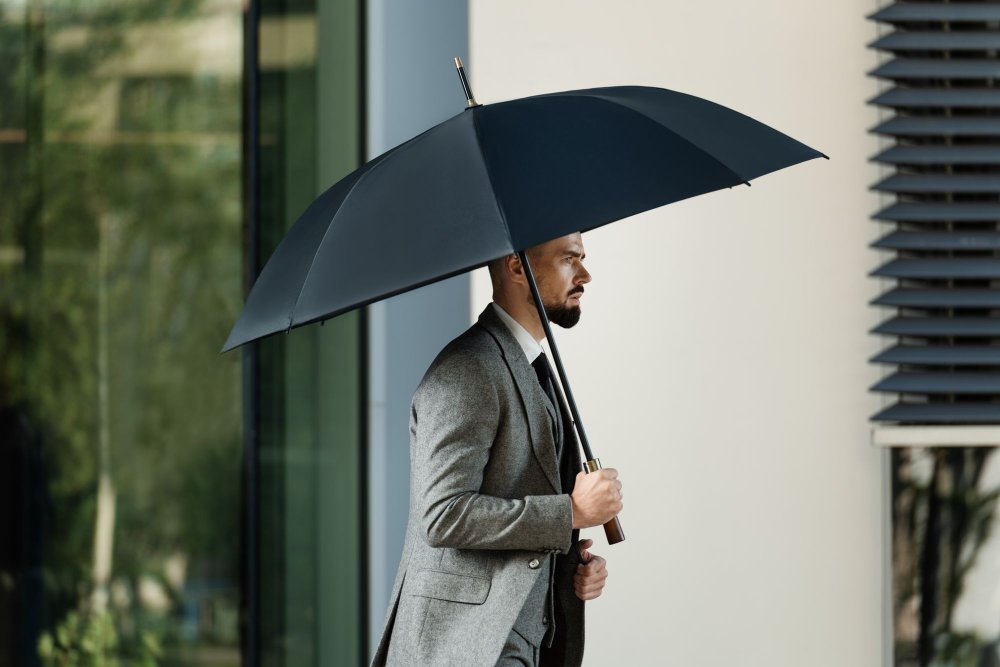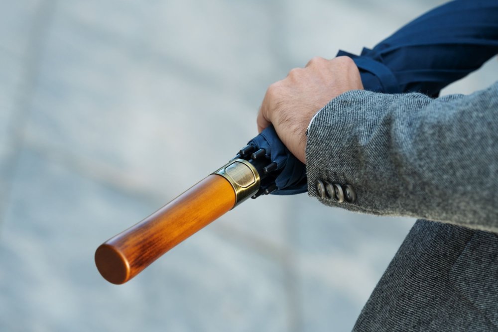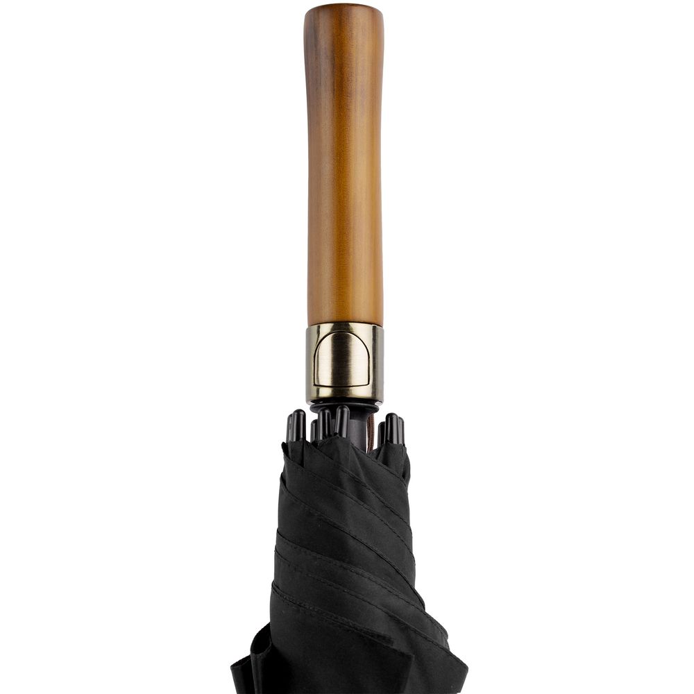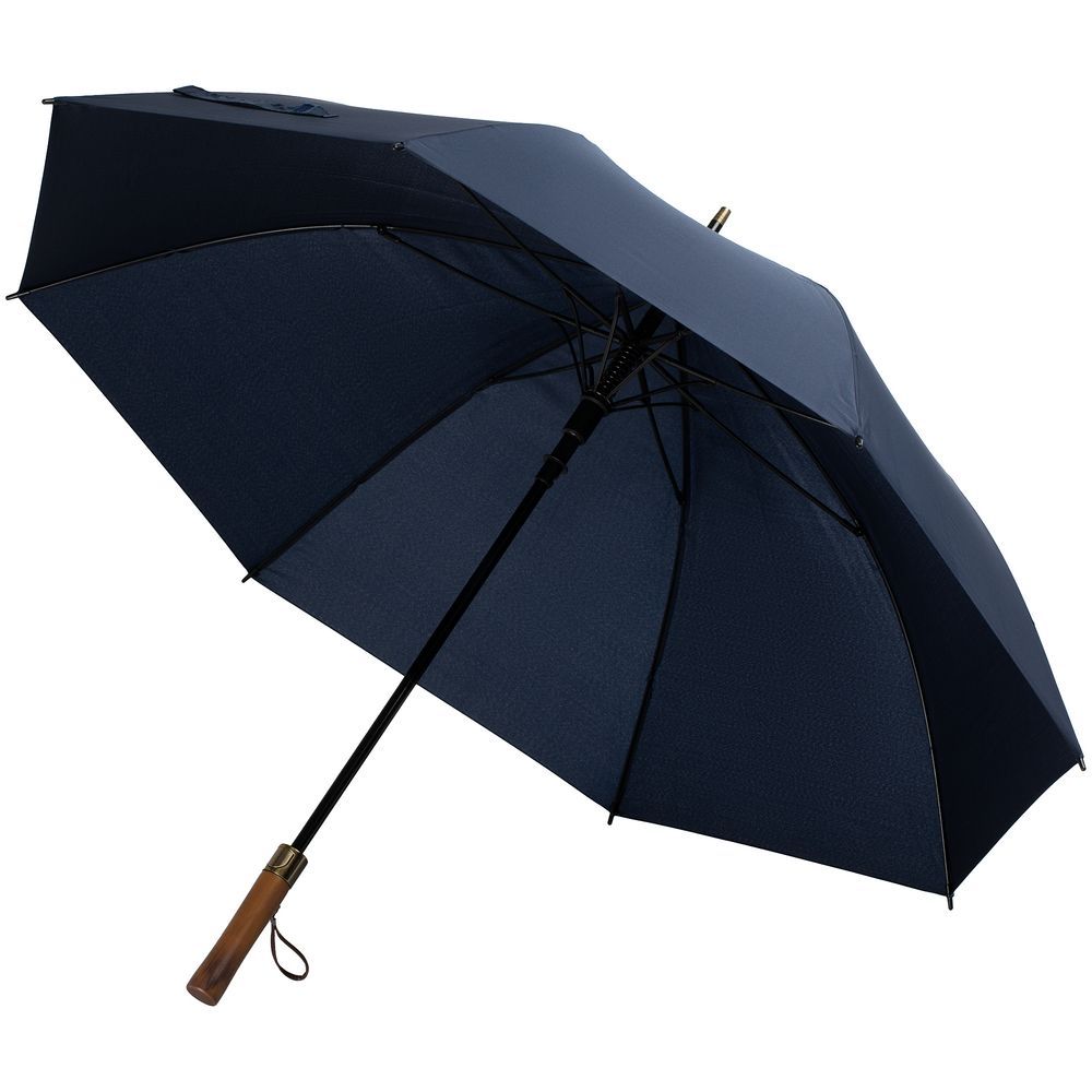Зонт-трость Represent — презентабельное решение для делового подарка. Зонт-полуавтомат, 8 спиц Большой купол 119 см Металлический шток Спицы из стеклопластика Пластиковый наконечник Прямая деревянная ручка с петлей из натуральной кожи и кнопкой открытия зонта Поставляется без чехла