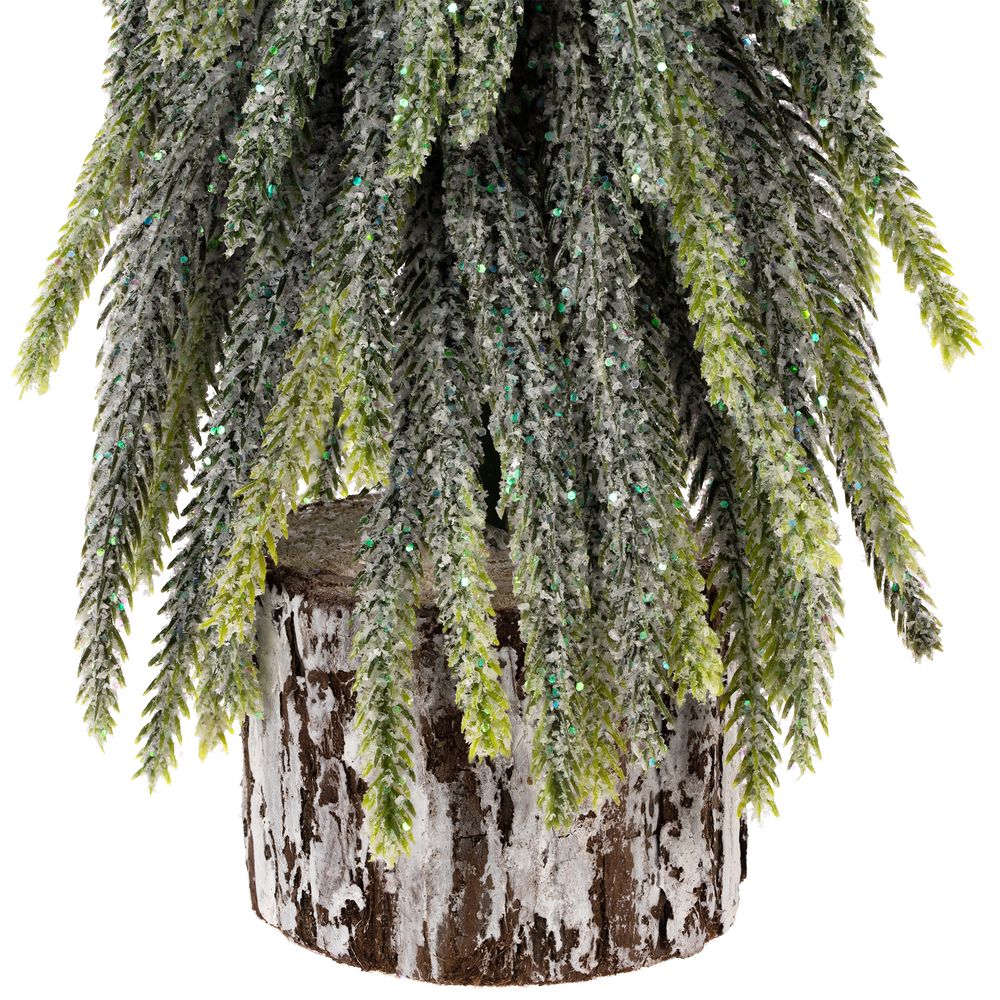 •Благодаря литым веточкам елочка выглядит очень естественно, а устойчивая деревянная подставка с эффектной фактурой добавляет всей композиции натуральности и органичности.