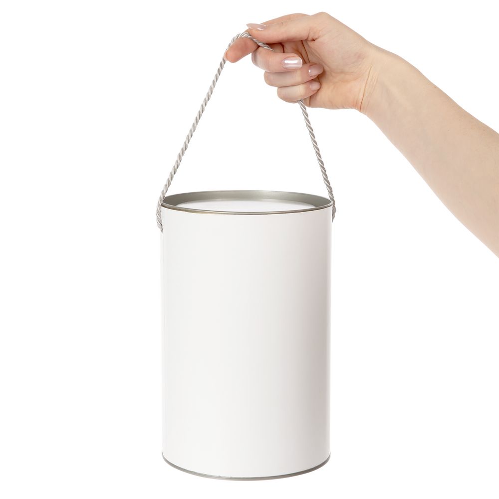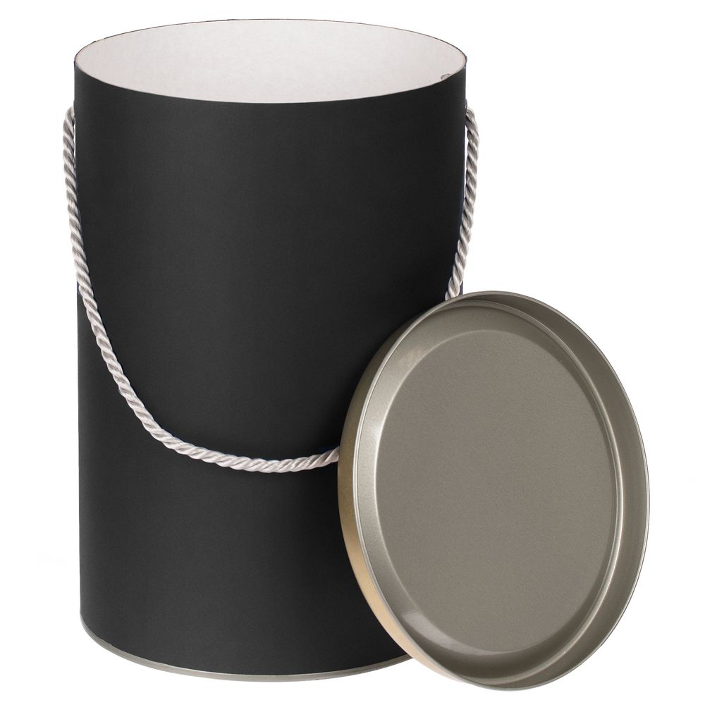 Тубус Tinmate сделан плотного из кашированого картона и дизайнерской гладкой бумаги Colorlab. Крышка из жести, ручка длинной 40 см.