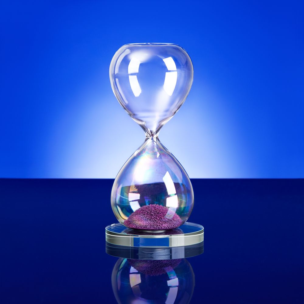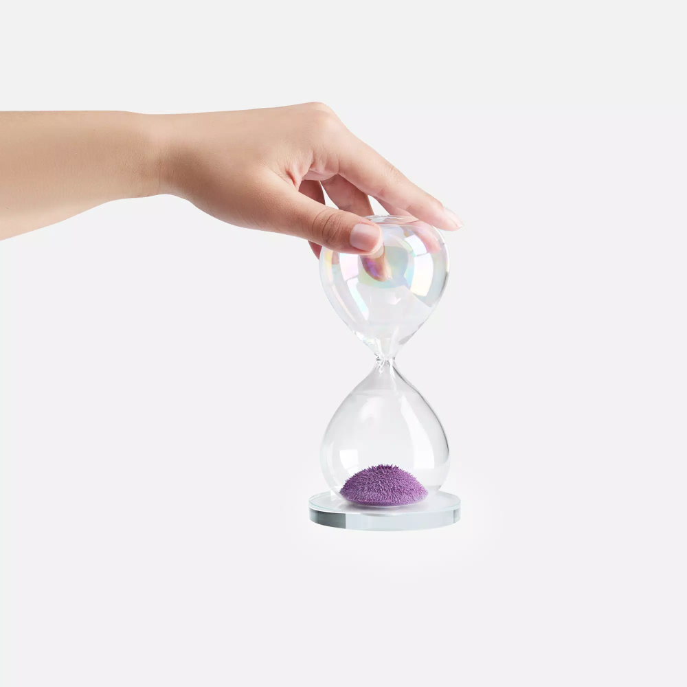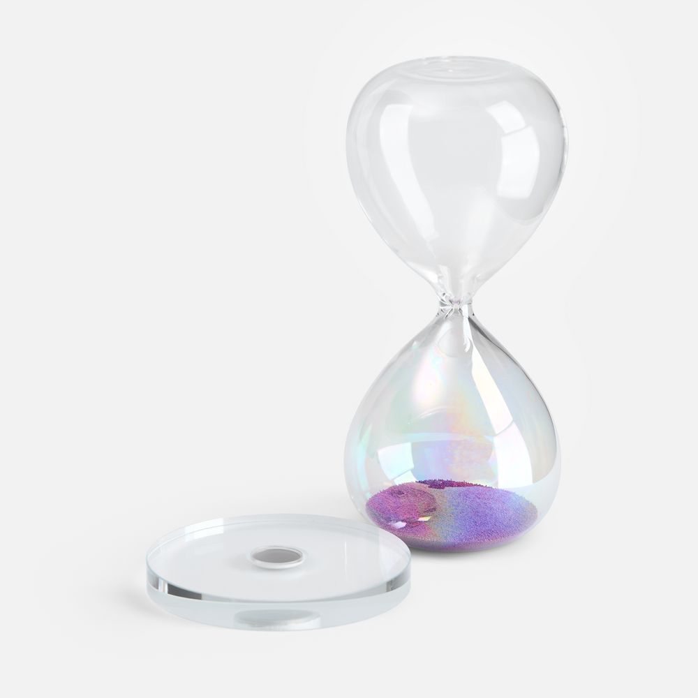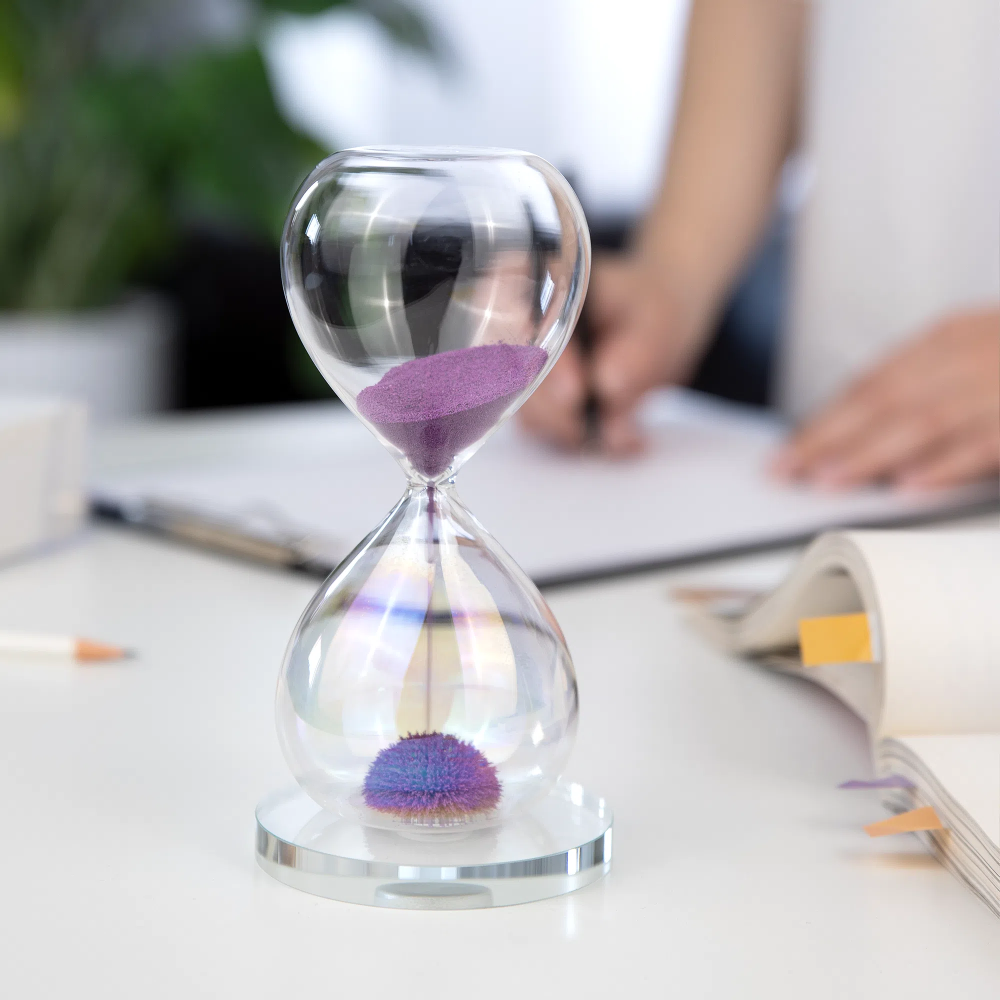 Магнитный антистресс Perola с песком сиреневого цвета имеет перламутровое напыление на одной половинке колбы с песком сиреневого цвета.