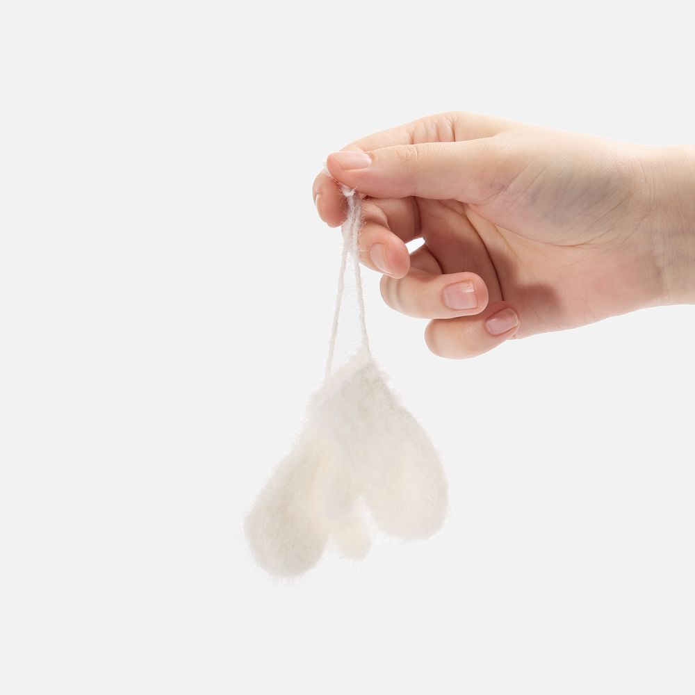 Вязаные подвески «Вьюжка» в виде миниатюрных варежек.