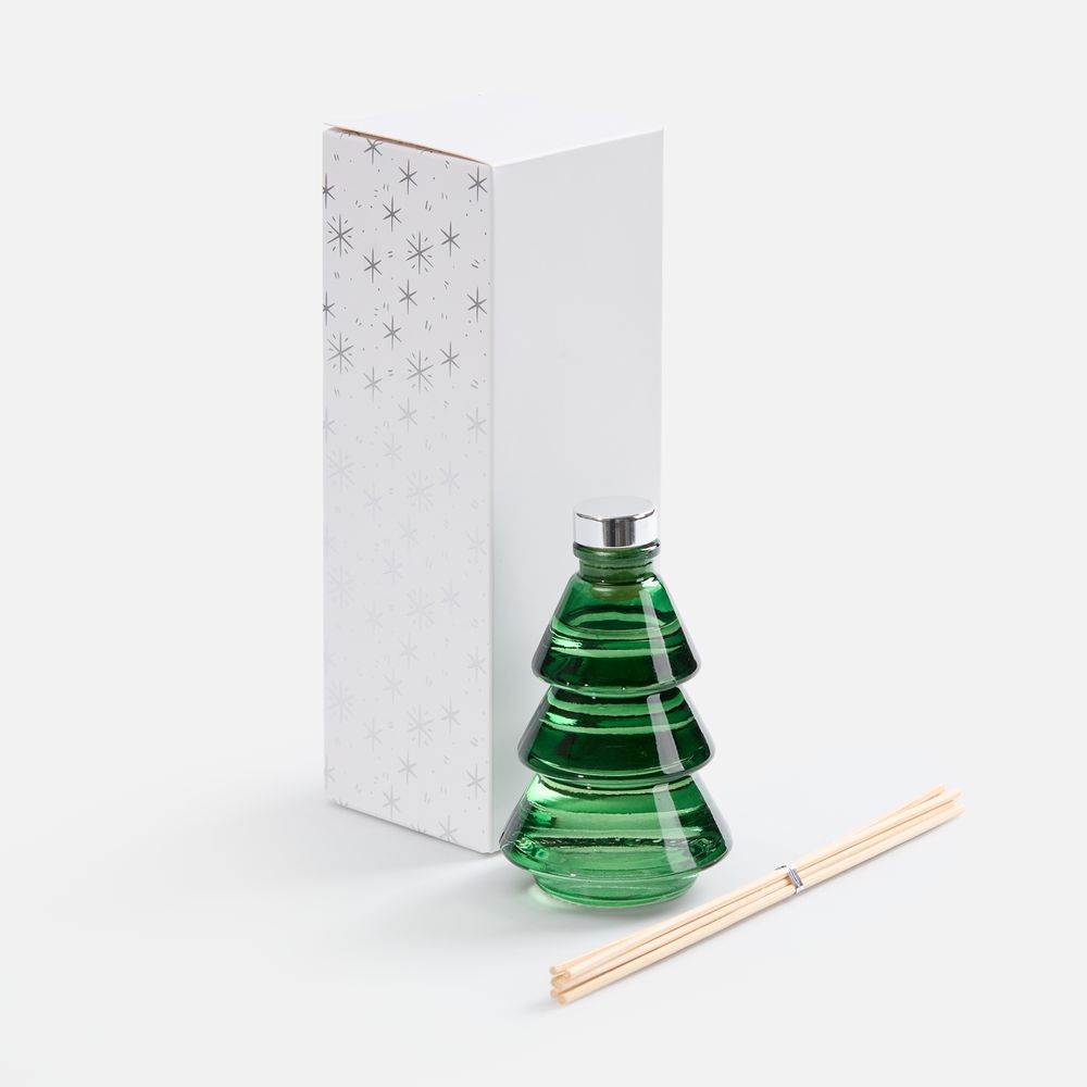 Диффузор Grunwald в виде елочки с ароматической жидкостью, которой хватит примерно на 3 месяца использования.