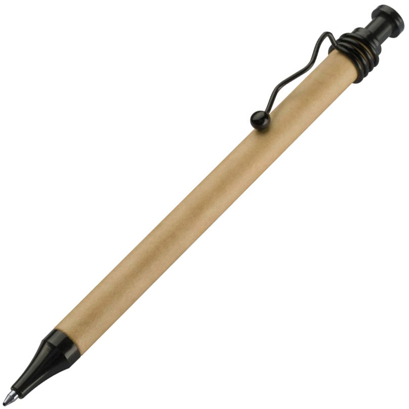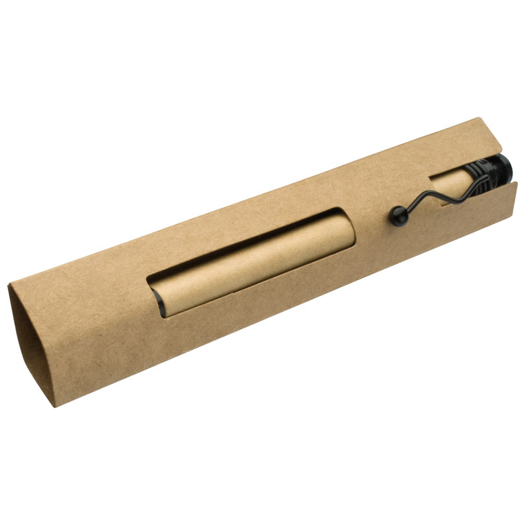 Шариковая ручка с синими чернилами изготовлена из переработанного картона, с гофрированным металлическим зажимом и пластиковым наконечником. Упакована в картонный футляр.