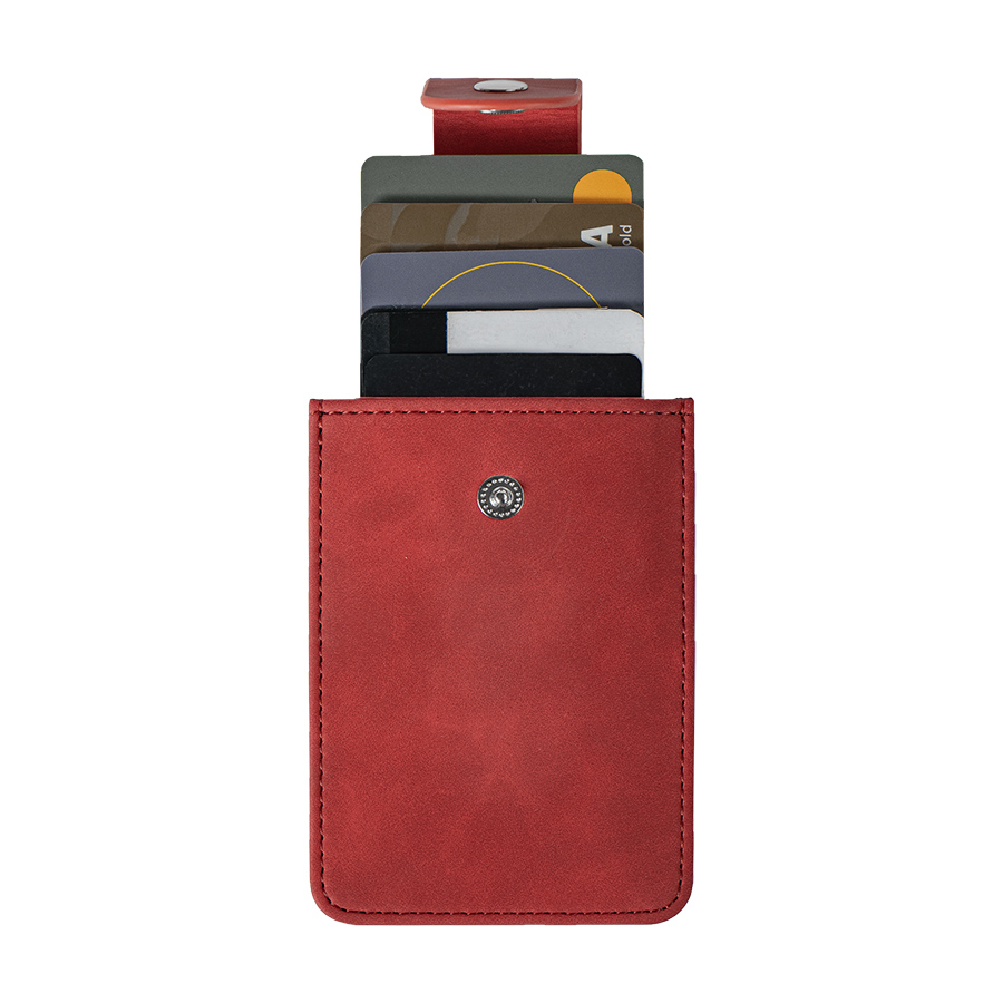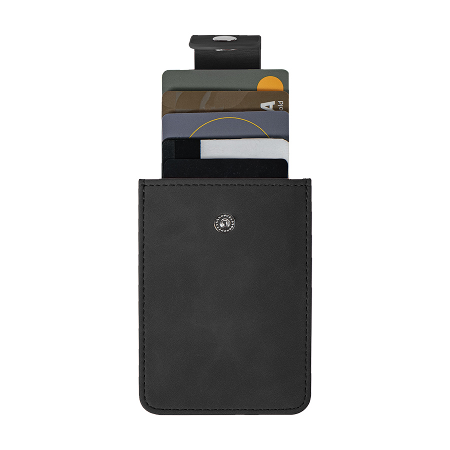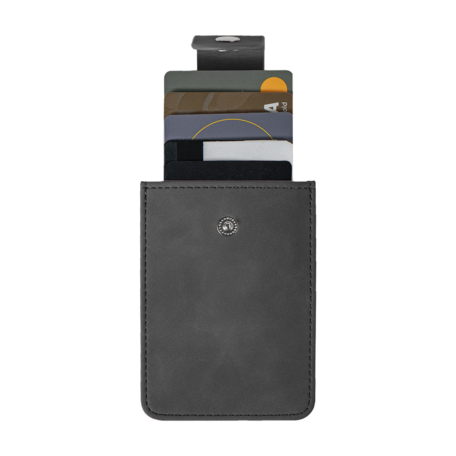 Внутри выдвижной механизм с отделениями для 4 карт. Хлястик на кнопке. Упаковка - пластиковый пакет.