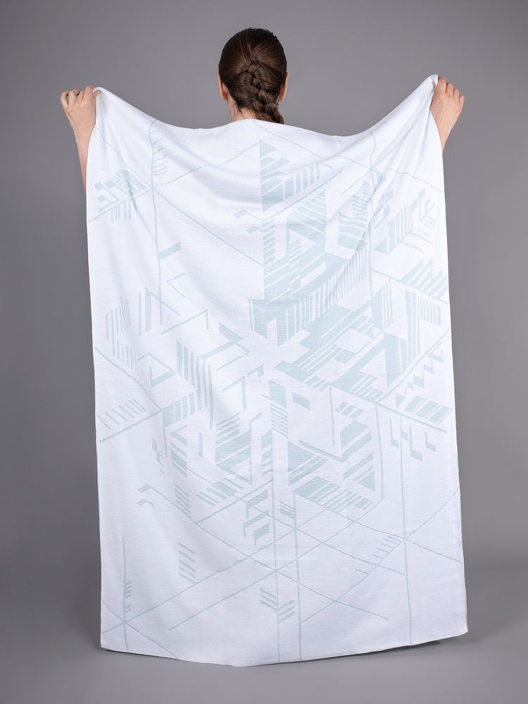 Плед Winterflake в нежных пастельных оттенках. Объемная снежинка в центре изделия состоит из множества разных линий и фигур.