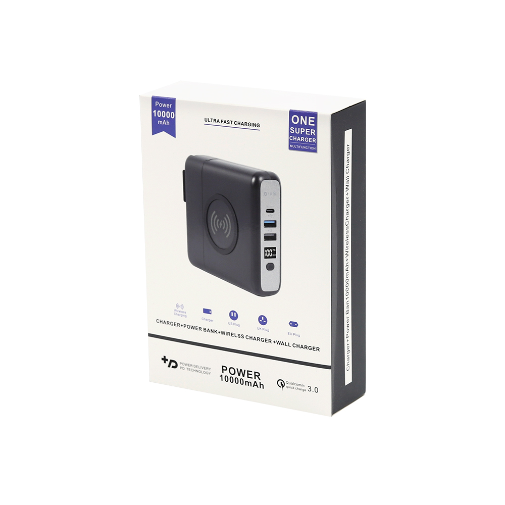 Внешний аккумулятор Gemini с беспроводной зарядкой и сетевым адаптером, 10000 mAh, черный