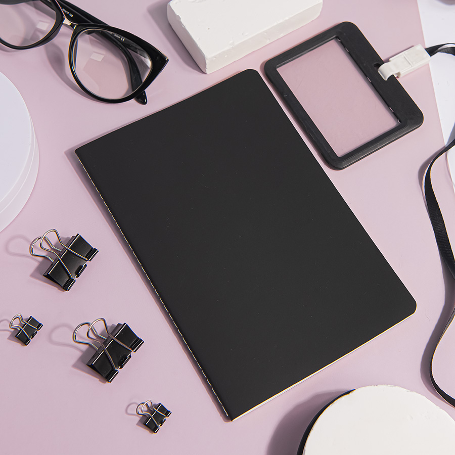 •Цвет обложки черный • Цвет обреза и прошивки на корешке в цвет обложки. •Мягкий переплет. •Обложка выполнена из материала PU Silk Touch. •Скругленные углы. •Бумага кремового цвета плотностью 70 г/м2. •Форзац нахзац кремовые. •64 страницы в клетку. Индивидуальная упаковка: пластиковый пакет.