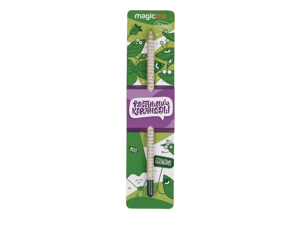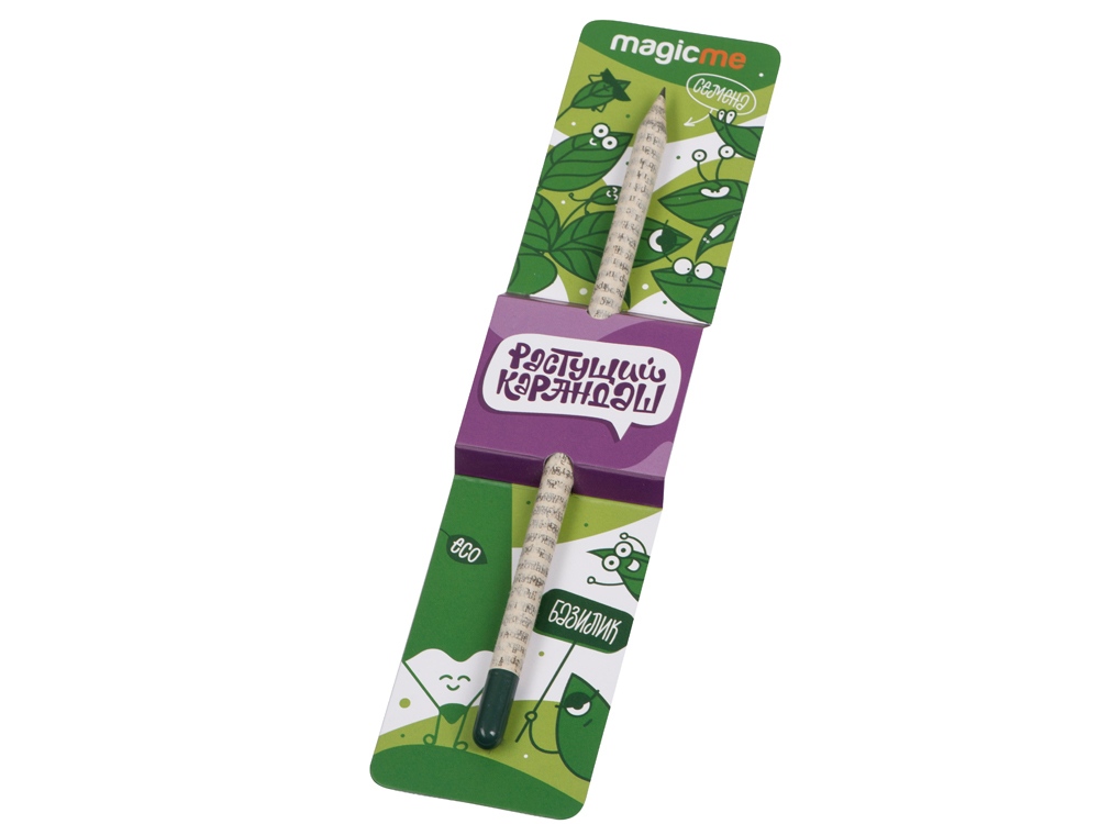 Растущий карандаш с семенами базилика сделан из бумаги и на кончике у него желатиновая растворяющаяся капсула с семенами.