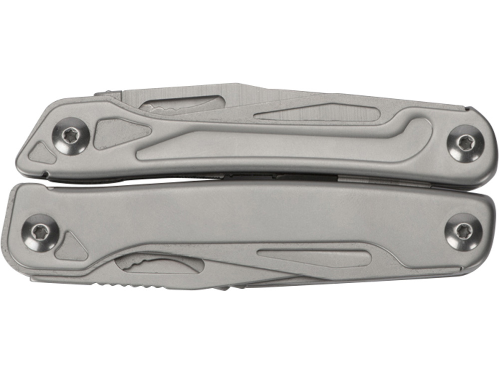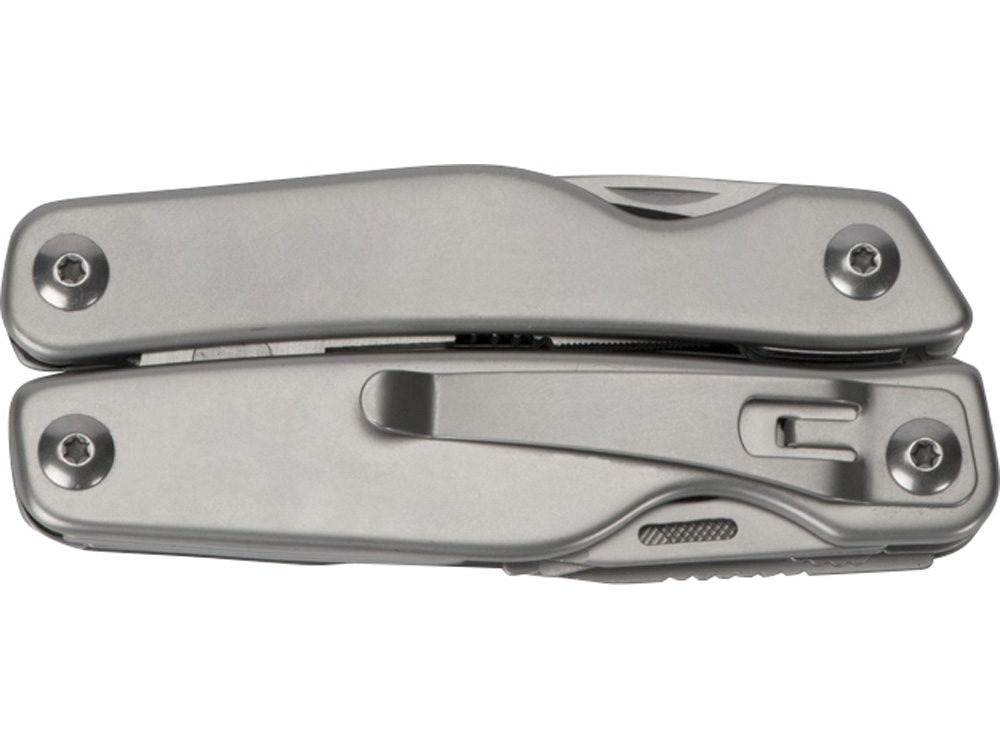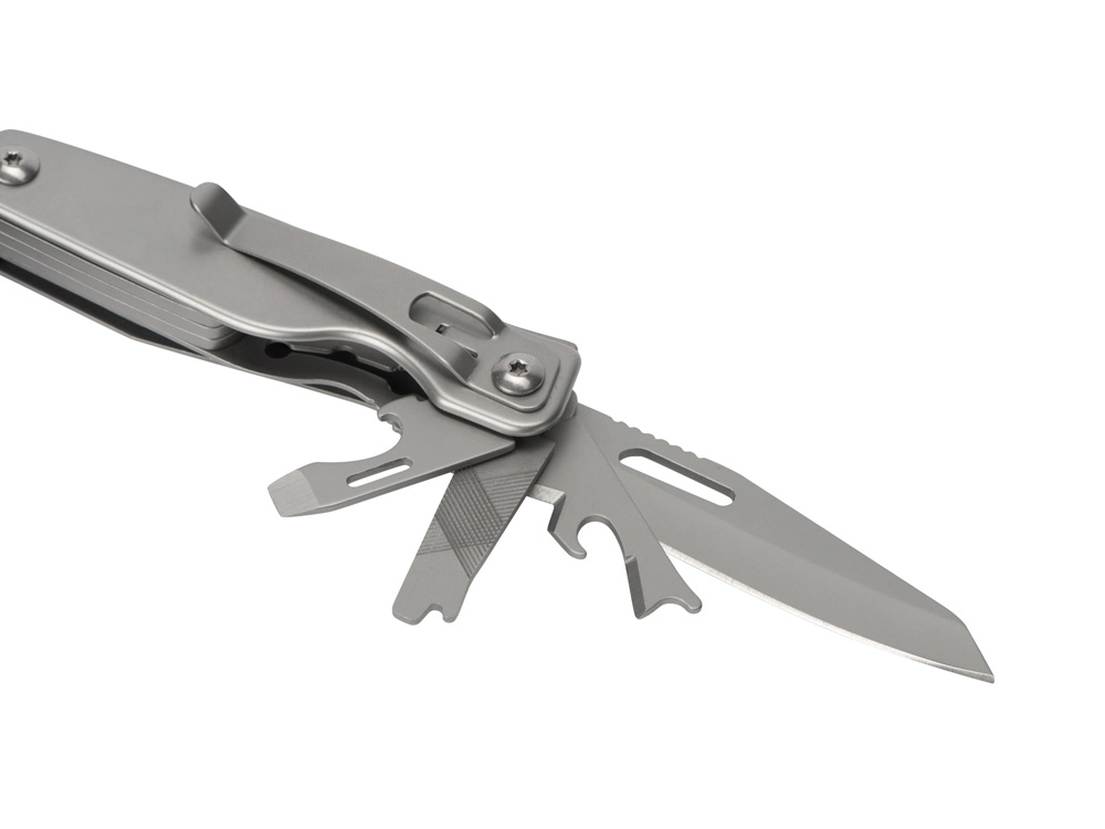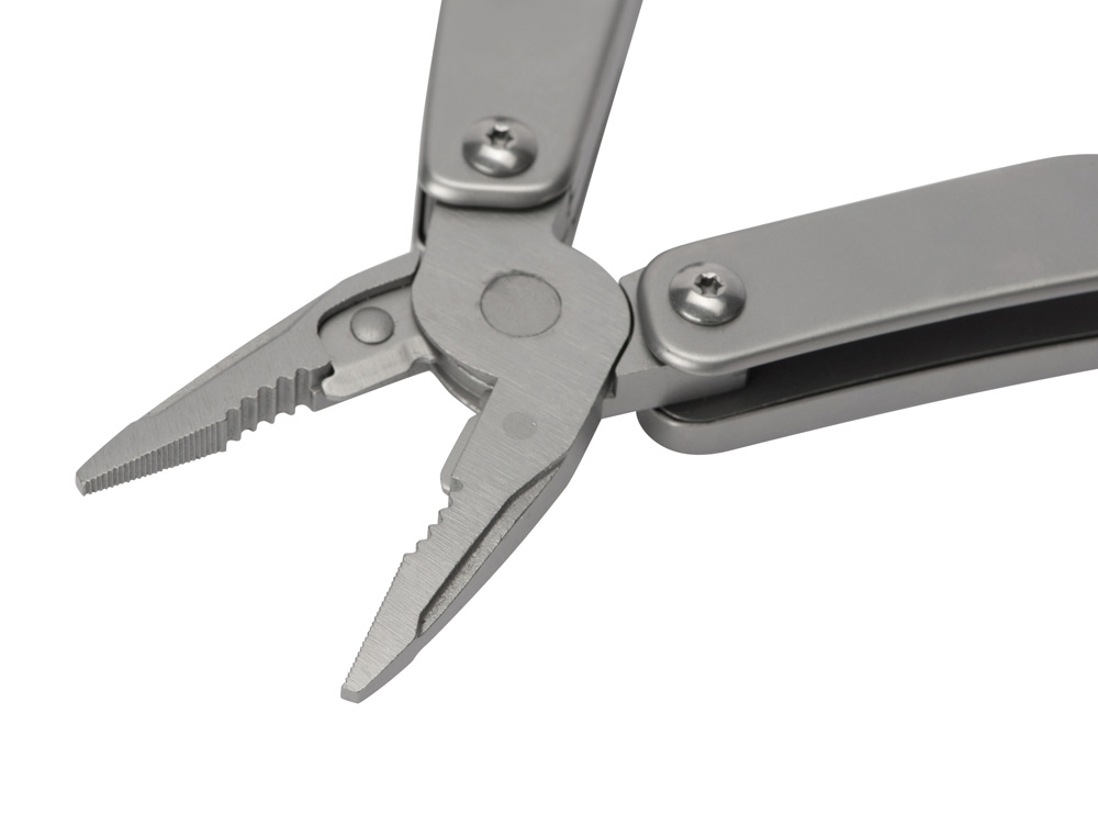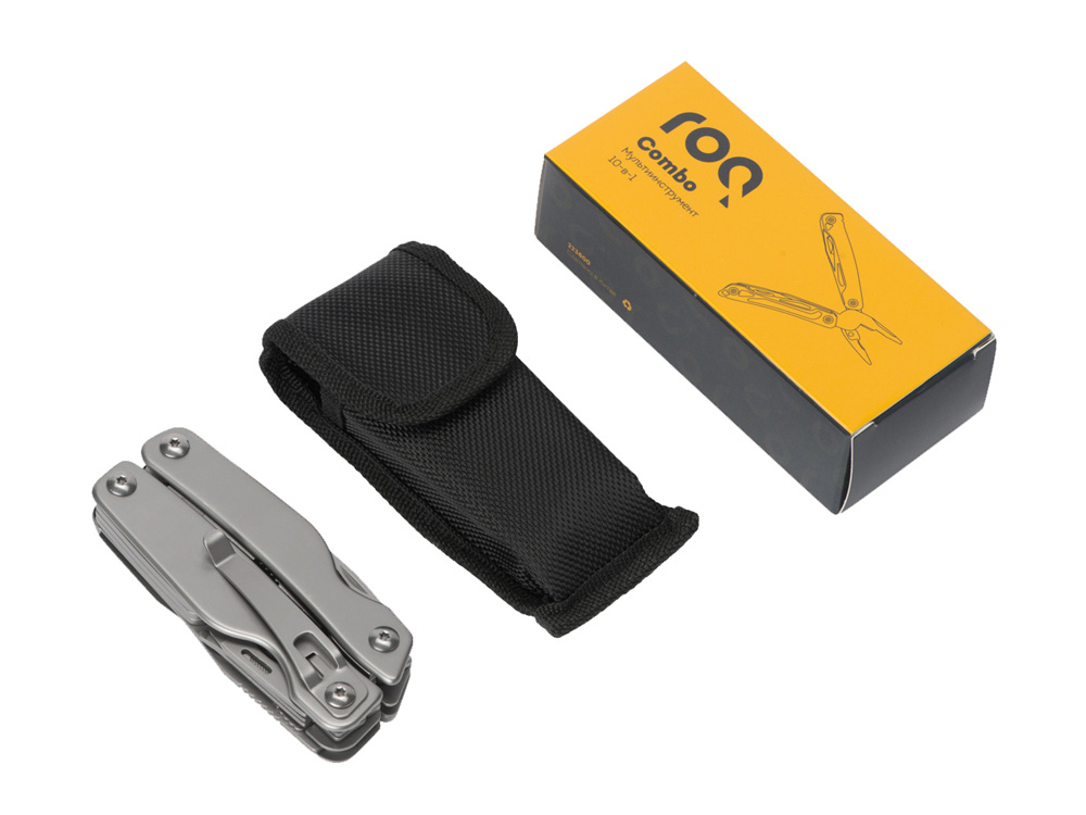 Мультитул-пассатижи Combo бренда roq выполнен из нержавеющей стали. Матовое покрытие позволяет сделать брендирование более заметным. Чтобы не потерять инструмент, его можно прикрепить клипом за ремень или подвесить за складное кольцо. Поставляется в индивидуальной коробке вместе с чехлом. • матовая текстура — фон для яркого нанесения • чехол в комплекте • пассатижи и другие важные инструменты помогут и в повседневной жизни, и в походе Функции: 1. Пассатижи 2. Нож 3. Консервный нож 4. Напильники по металлу и деревупилка для ногтей 5. Плоская отвертка 6. Открывашка для бутылок 7. Нож для писем 8. Складное кольцо для крепления 9. Крестовая отвертка 10. Пила
