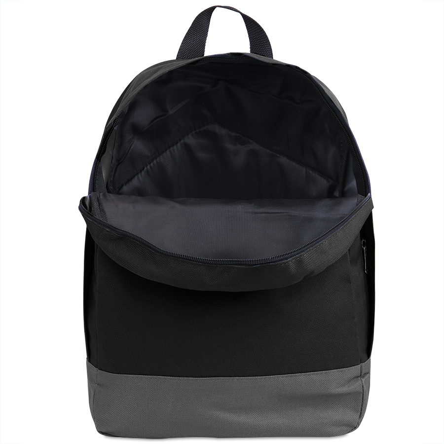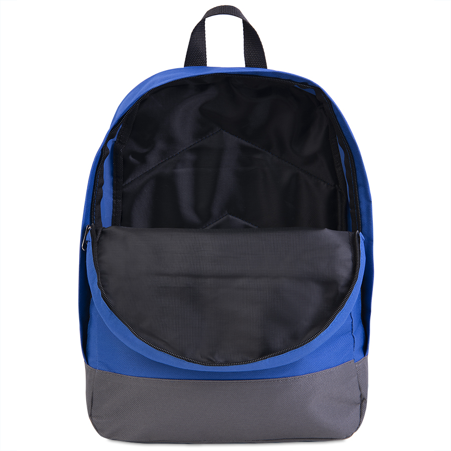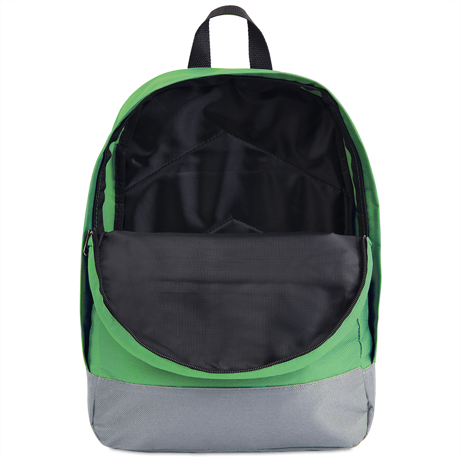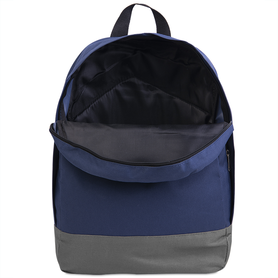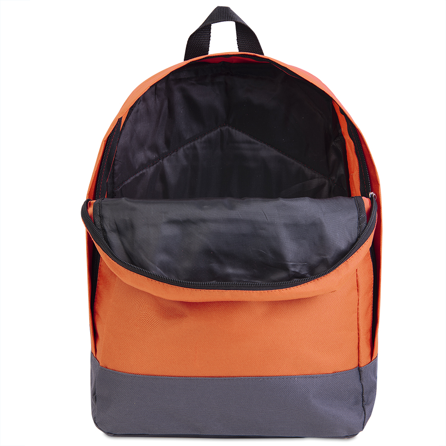Промо рюкзак из оксфорда плотностью 600D с контрастным дном. Закрытый внешний карман на молнии на передней части. Одно основное отделение на молнии с 2-мя собачками. Мягкие регулируемые лямки и усиленная спинка с поролоном. Объём в районе 10 литров. Выдержит вес 15 кг.