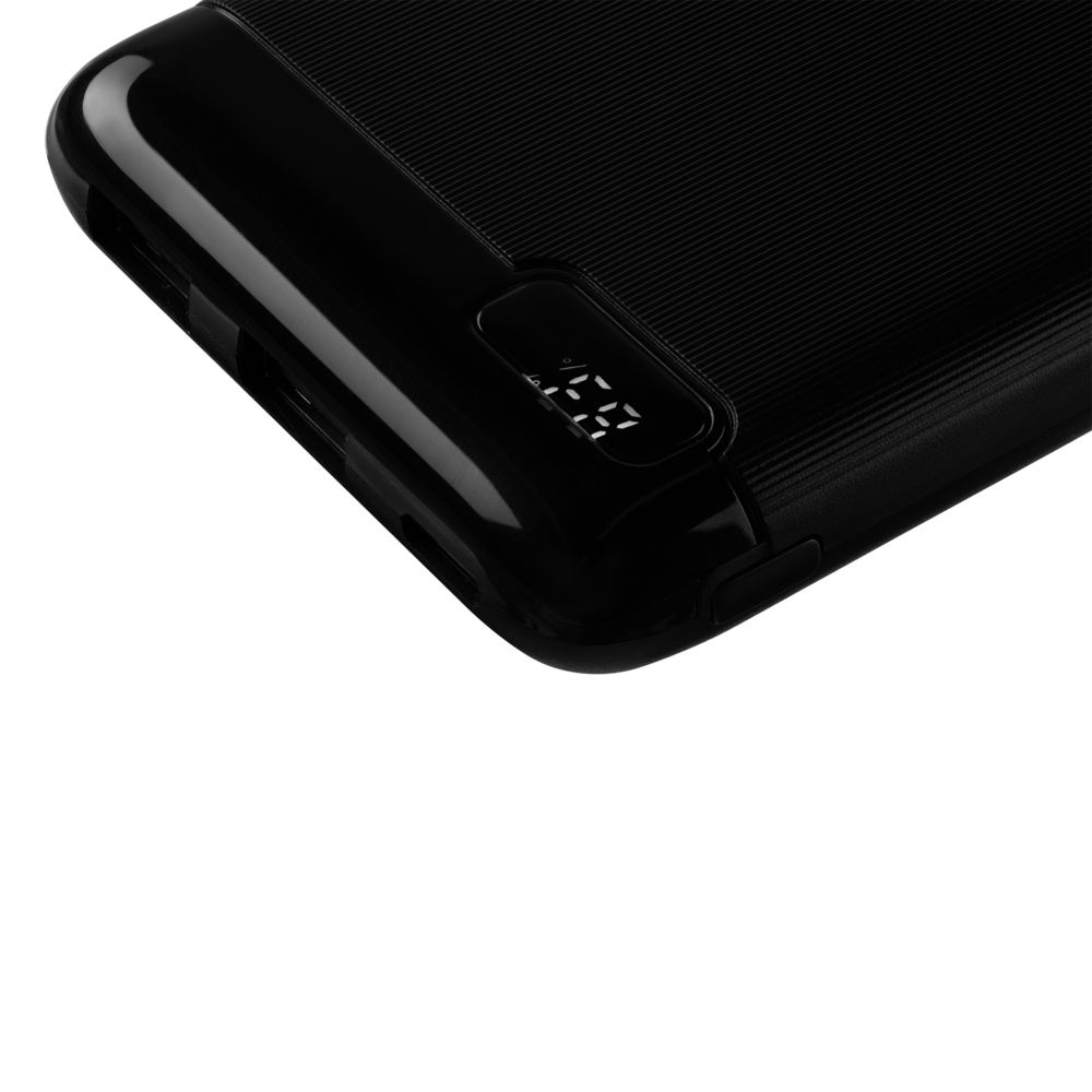 Компактный аккумулятор со входным разъемом Type-C и индикатором заряда в процентах. Литий-полимерный аккумулятор. Емкость: 5000 мАч. Количество циклов заряда-разряда: не менее 400. Входные параметры: – Type-C, Micro USB: 5 В, 2 A. Выходные параметры: – Два выхода USB-A: 5 В, 2 A (до 3 А суммарно при зарядке двух устройств). Время заряда: от 3 до 4 часов (зависит от параметров зарядного устройства). В комплекте зарядный кабель Micro USB.